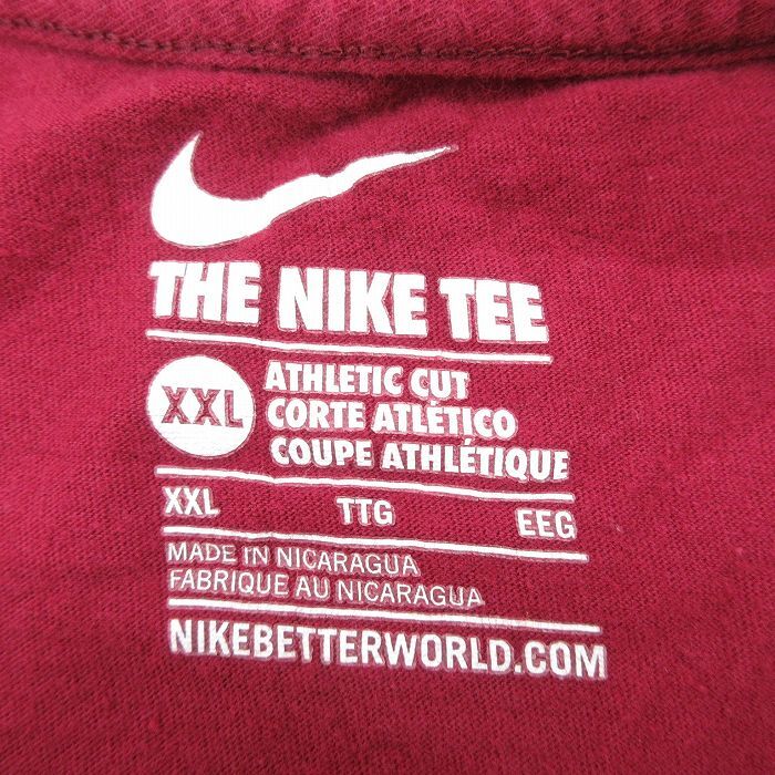 【商品名】 XL★古着 ナイキ NIKE 長袖 Tシャツ メンズ ワンポイントロゴ 大きいサイズ コットン クルーネック エンジ