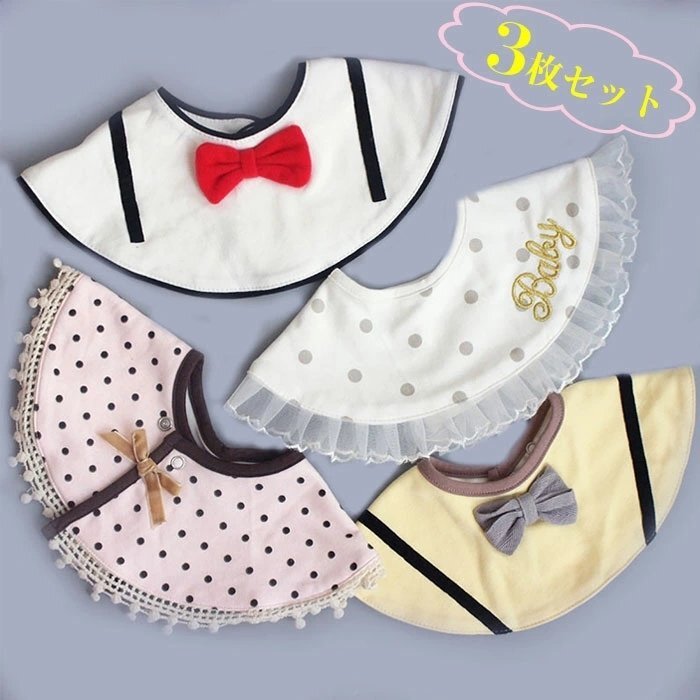 ビービブ お洒落 出産祝い プレゼント コットンよだれかけ スタイ女の子 男の子 ベビー ビブ スタイ 綿 3枚セット ☆カラー/6色選択/1点