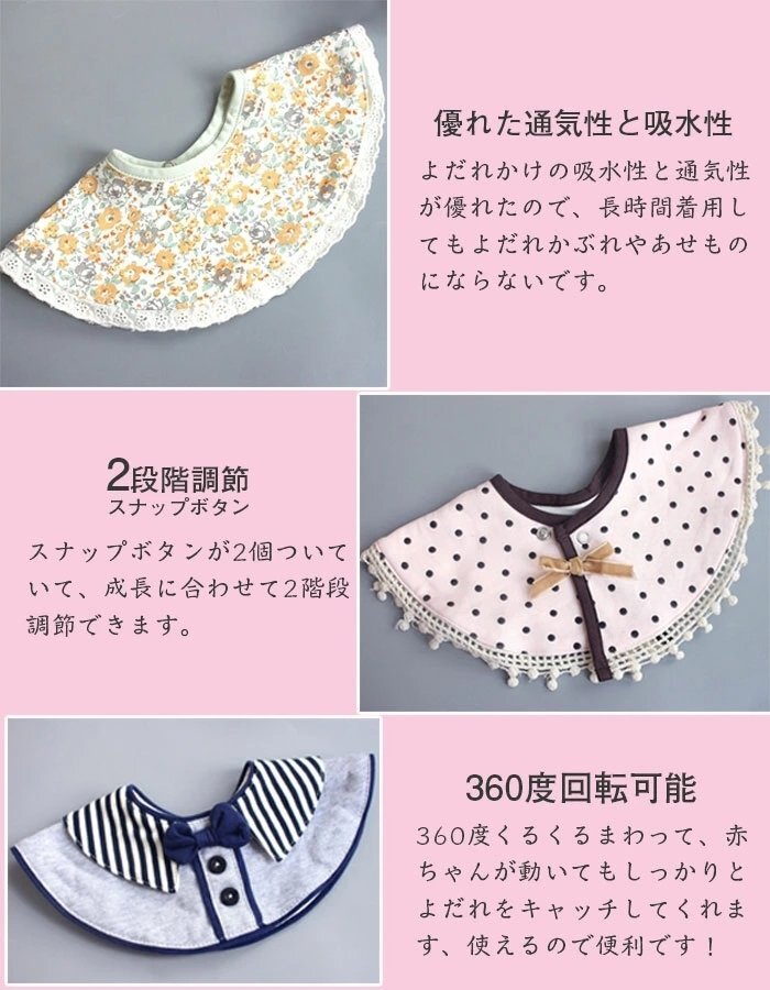 【360°スタイ 】360°の花びら型で一端が濡れたら回せば引き続き使える。