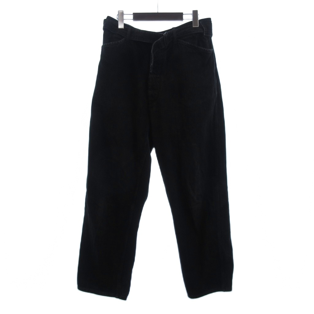 コモリ COMOLI 23SS デニムベルテッドパンツ ジーンズ ワイド ボタンフライ X01-03001 コットン 黒 ブラック 2 メンズ