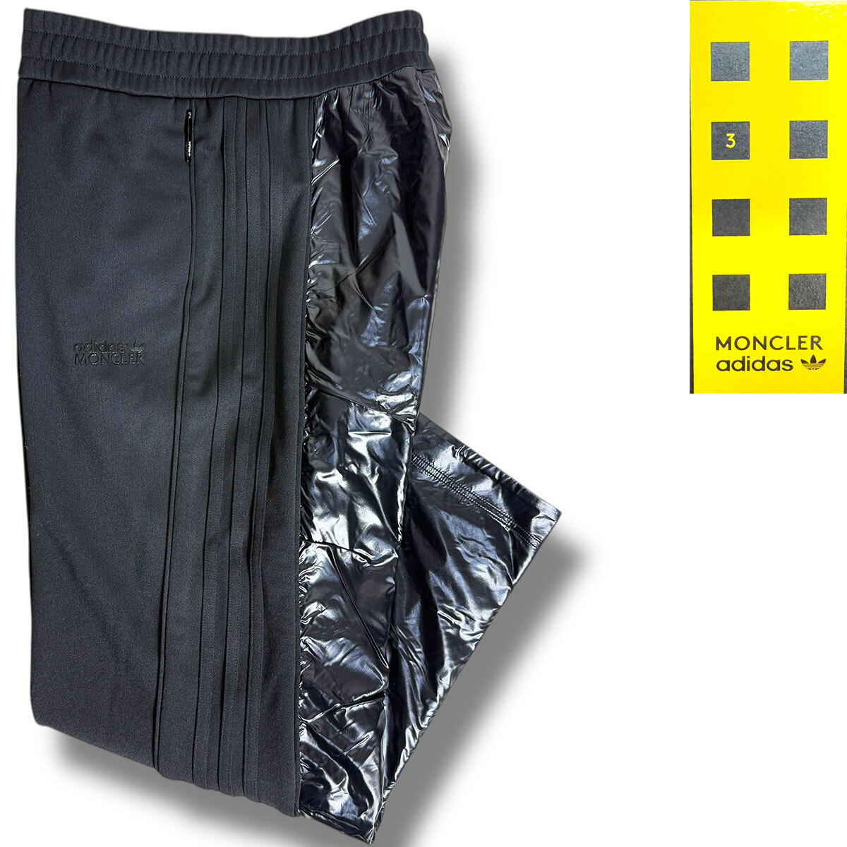 J7181 新品 モンクレール×アディダス ナイロン切替 3ストライプライン ワイドトラックパンツ ブラック S(M) MONCLER×adidas
