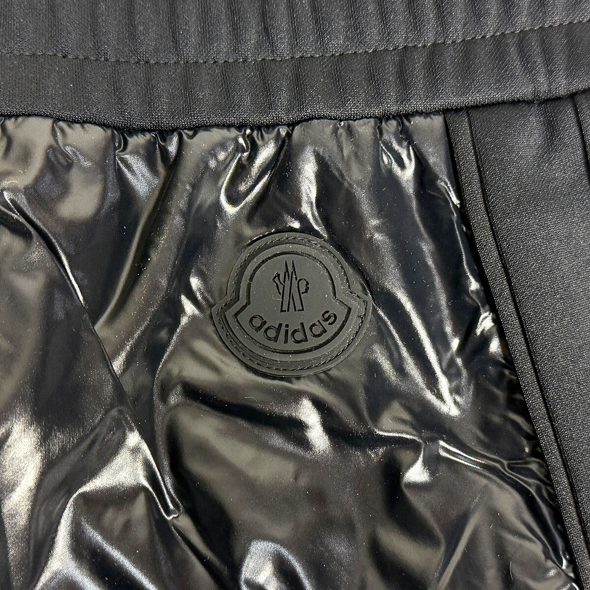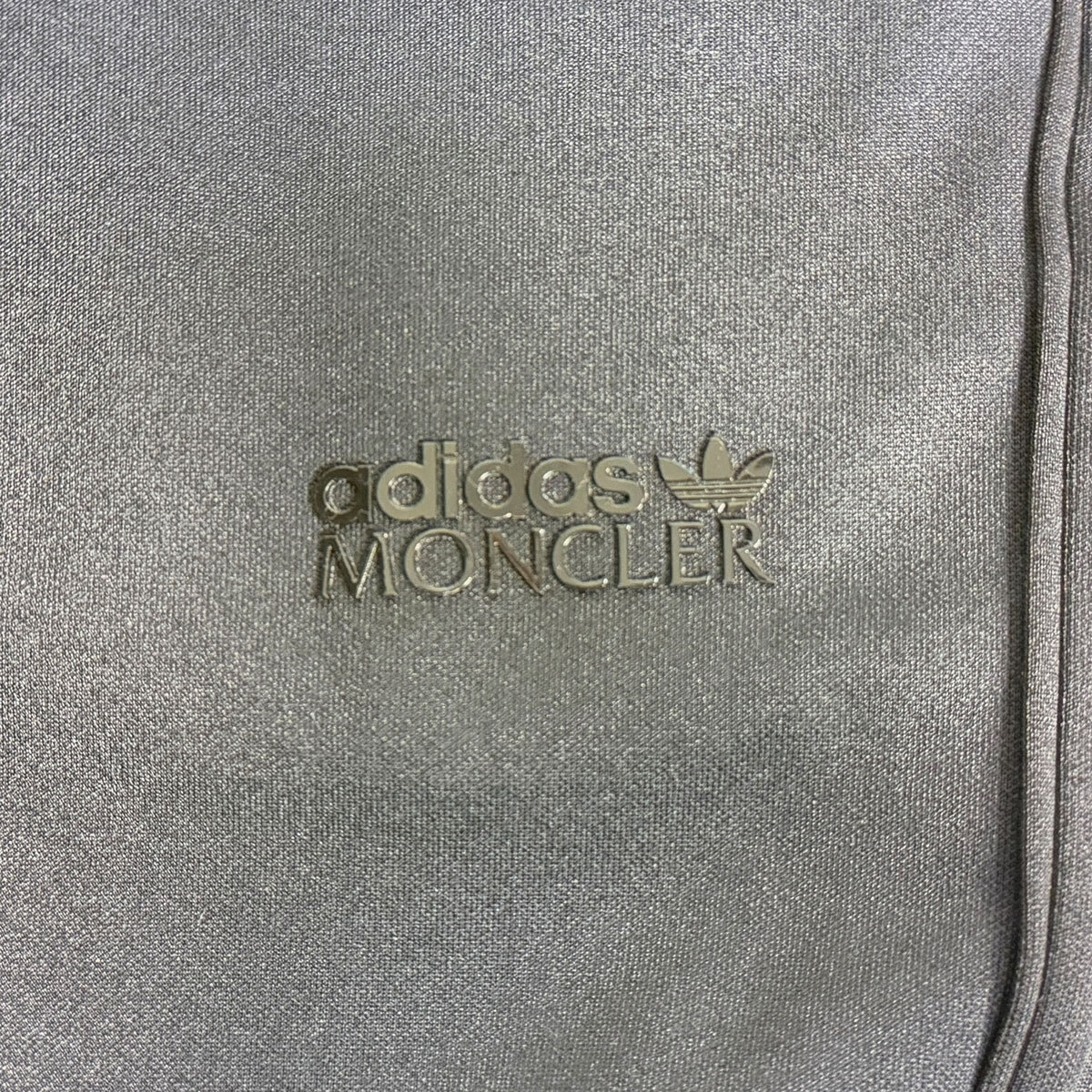 商品について:背面がモンクレールらしいナイロン、全面がadidasらしいジャージ素材。かなりワイド目なアイテムでインラインではなかなかないシルエットです。サイドにバスケパンツのようなボタンがありますがこちらは飾りです。またサイドラインは同系色でシックな悪目立ちしないいかにもコラボアイテムらしい一品。