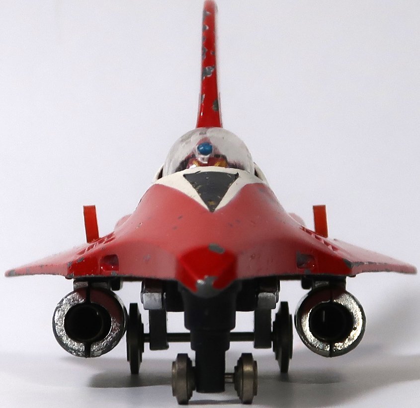 出品は画像の物のみです。使用品ですので汚れや傷が有ります。付属品は一切有りません。片方のジェットエンジンの後端が無くなっています。動くコクピットに白っぽい汚れがあります。あとは画像をよくご覧になって確認してください。このような状態ですのでお取引後はいかなる理由がありましても返品は出来ませんしクレームもお受け出来ません