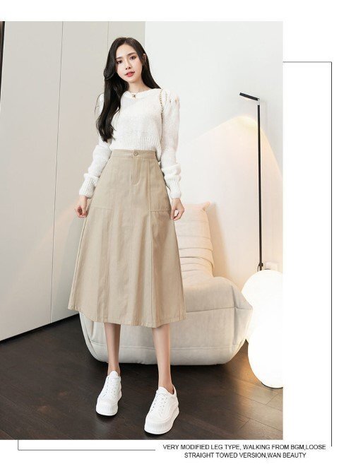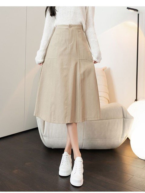 ・ハイウエストで全体的にスラッと見えるスカートです。Aラインで美シルエット。シンプルで着回し抜群◎