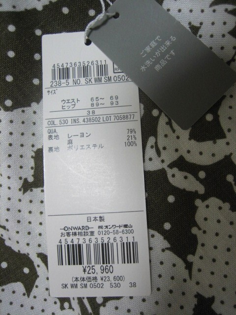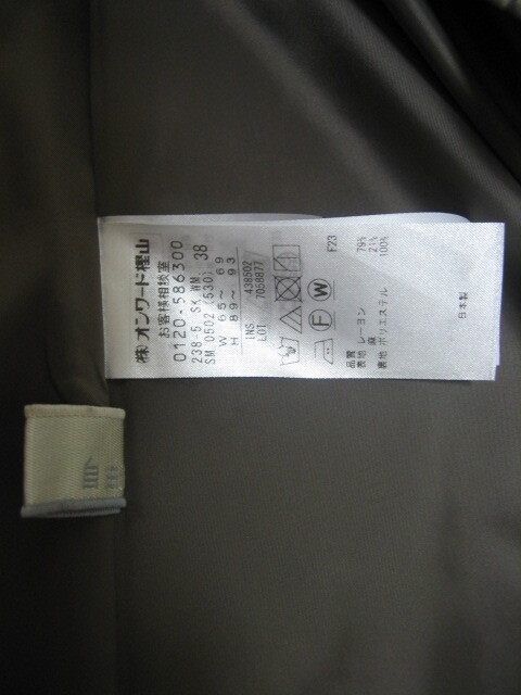 商品 百貨店にも入っているブランド、自由区の新品タグ付き、定価¥25,960(税込)⇒¥3300でラストにて激安即決。ラストにて、お見逃しなく。(★★お勧めポイント★★★①ウエストの背中部分がゴムなので、ゆったりで楽です。すごく綺麗な合わせやすいお色。フレアが綺麗で歩きやすいです。②自宅でお洗濯できると紙タグ表示があり、ポケットもあり、機能性も良いデザイン。横からのラインも美しいスカート。日本製で上質なスカートをお探しの方にお勧め。③百貨店でここまでのお値引きはなく、ラスト破格の目玉商品。お見逃しなく。)◆素材 (レーヨン79%  麻21%)(ポリエステル100% )◆色 カーキのような茶系(各パソコンによる多少のお色誤差はご了承ください) ◆サイズ38(ウエスト65-69、 ヒップ89-93)◆実寸(着丈約85センチ前後 、ウエスト約67センチ前後でゴムで伸びます)素人採寸にて誤差はご了承ください◆お支払い方法  ヤフー簡単決済(申し訳ありませんが、送料はご負担ください。) ◆発送方法①②③のなかでご選択ください。(①定型外②レターパック¥430、レターパック¥600③通常ゆうぱっく)◆備考①落札後のキャンセルはお断りさせて頂いています。②薄いミリ単位の汚れなどまで気になる方、神経質な方はご遠慮ください。ノークレーム、ノーリターンでよろしくお願い致します。③マイナス評価の方の場合落札をお断りする場合があります。④メールのお返事が、2日ほど送れる場合ありますが、必ずお返事は致しますのでよろしくお願い致します。⑤他にも新品綺麗な百貨店の洋服などを出品してます。(2点以上落札してくださった場合、送料一括で郵送できますのでのでぜひご覧ください)