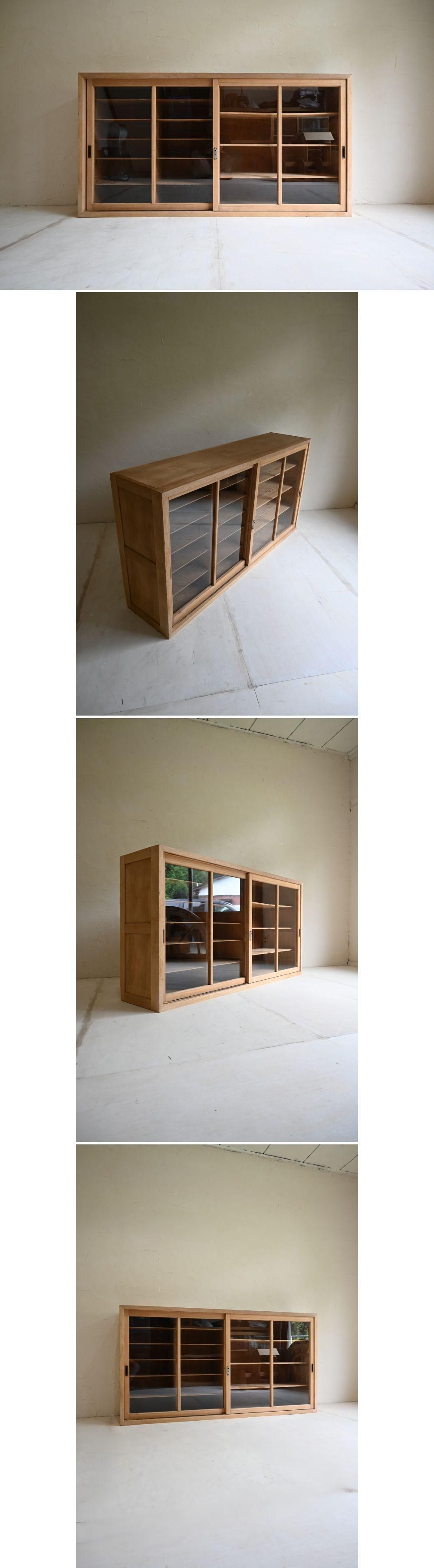 古いガラス戸仕切り収納棚 アンティークアトリエ本棚書棚飾り棚陳列棚食器棚店舗什器