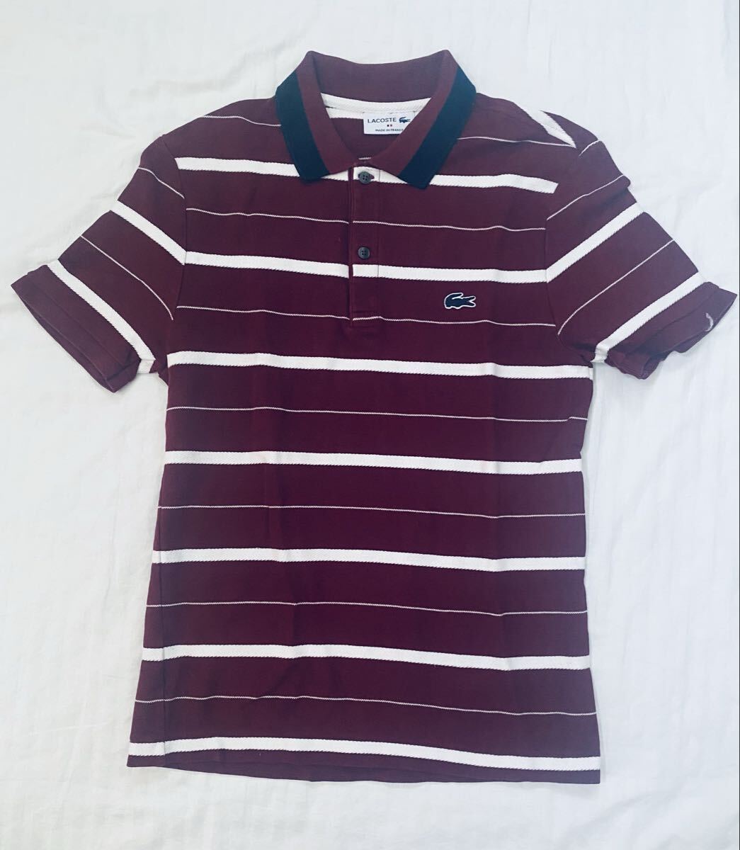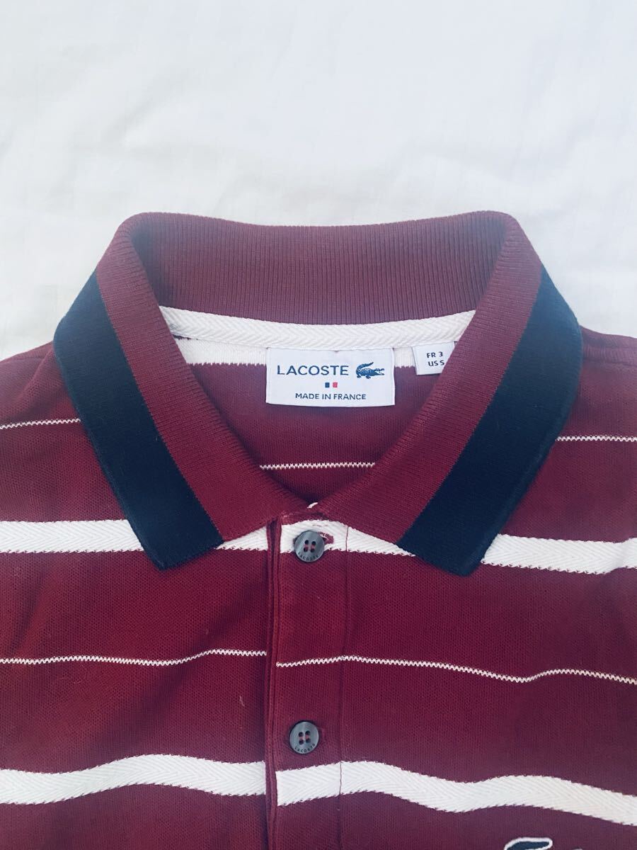 中古 M LACOSTE ラコステ/フレンチラコステ/フランスラコステ/ポロシャツ/3/コットン/ワインレッド ストライプ/フランス製