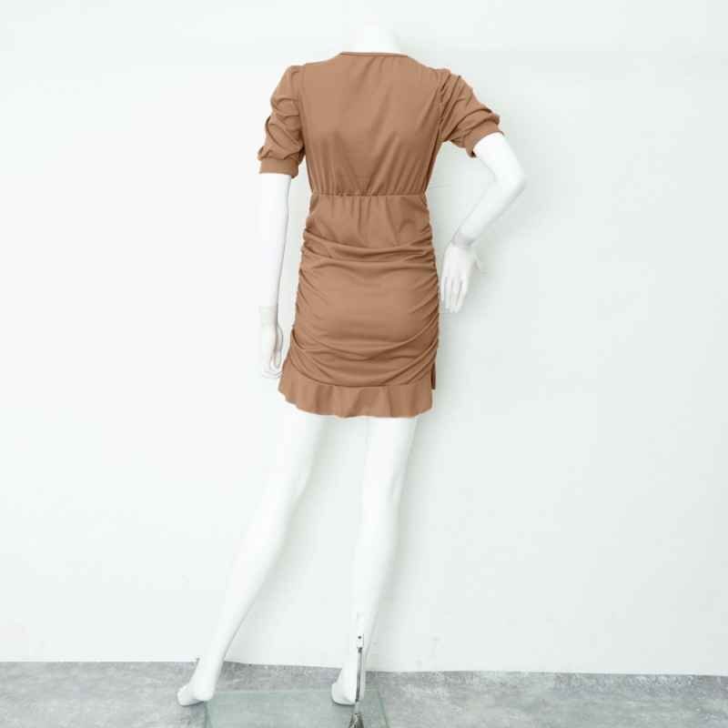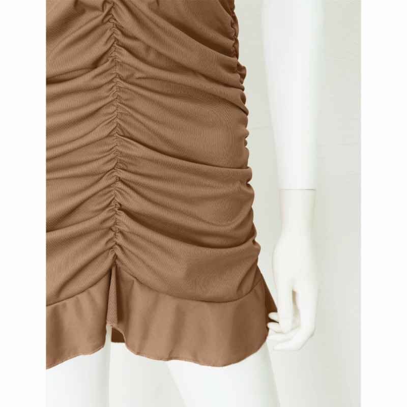 きれいめに着れるシャーリングミニ丈ワンピース。