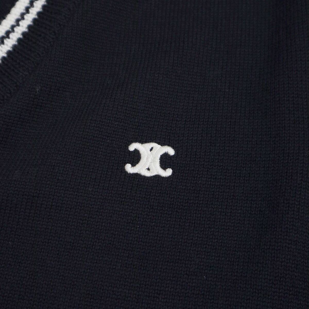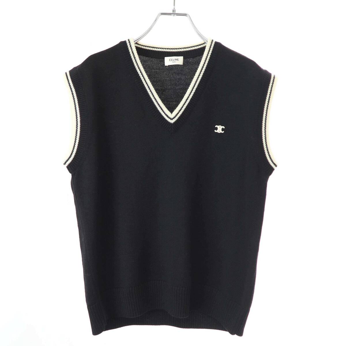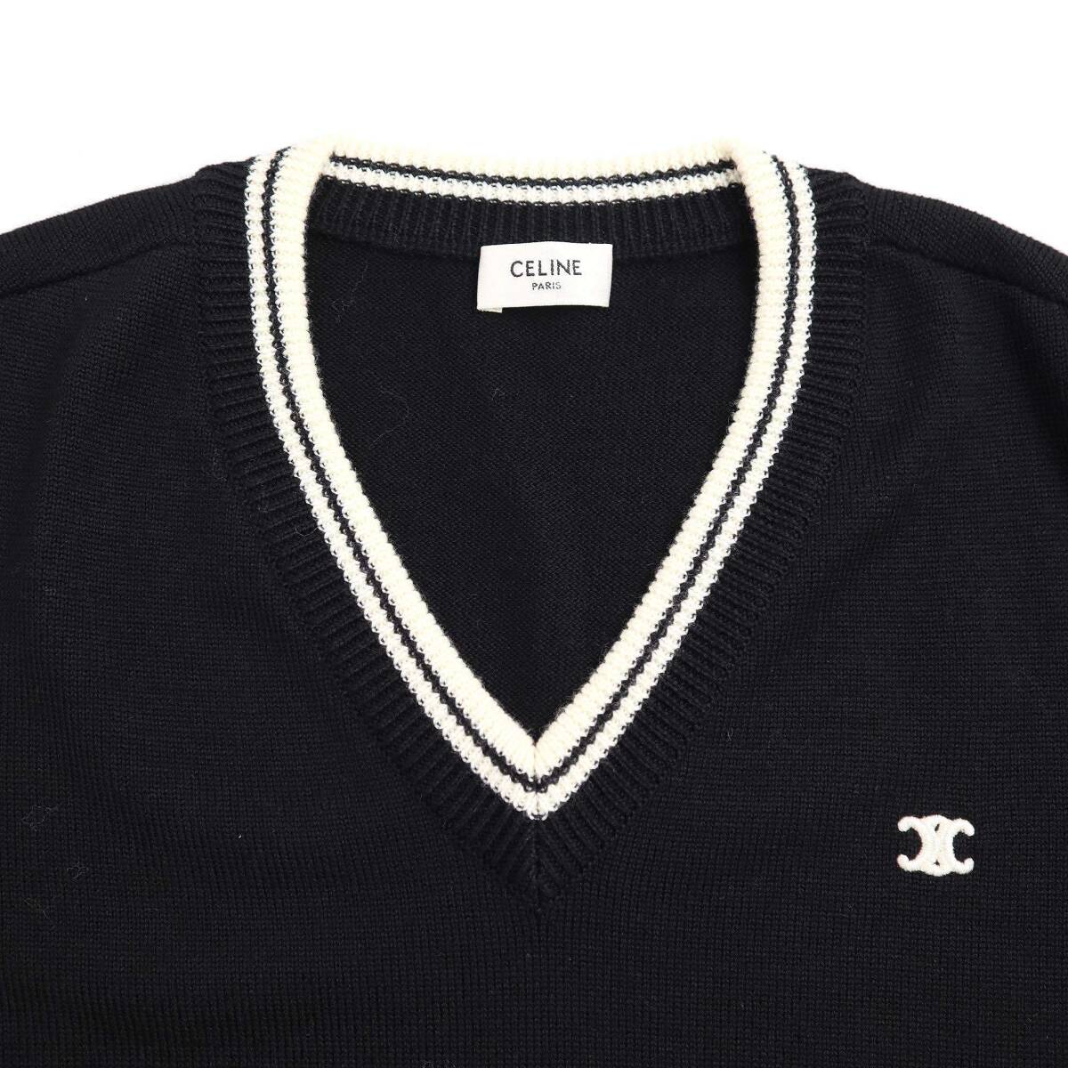 CELINE セリーヌ トリオンフ Vネックウールニットベスト 2ADCK823Y.38NO ブラック XS IT7XBNOOH96S