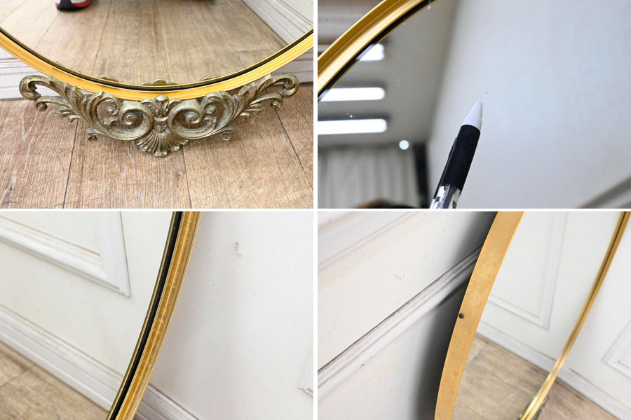 ----------------------------------------------------------------------------------------- ●送料や注意事項は必ずご確認下さい。落札後にトラブルになるケースが増えております。● ◆コンディションは写真・文章にて記載して有りますが、全てのキズの写真は掲載致しておりません。大きなダメージを除き見落とし、記載漏れが有る事はご了承下さい。 ◆当サイトにて出品する商品は多種多彩で、当方商品知識の無い物も多数ありますので落札後の質問やメンテナンス等にはお答えできません。 ◆入札された時点で、画像、文章をご理解していただいたものと判断させていただきます。不明な点は前もってQ&Aからお願い致します。入札後の質問やお電話等でのキャンセルは一切受け付け致しません。 ◆商品説明に「ノークレーム」と記載しているものに関しては、如何なる状況で届いても保証致しません。詳しくは注意事項の「商品到着後について」の最後に記載しておりますのでご確認下さい。 ---------------------------------------------------------------------------------------- お洒落なメタル製のミラー中古品の出品です。 金具にサビ、鏡内に変色、フレームに経年のキズ、シミ、汚れがあります。 サイズ 幅60 奥4 高107cm | ||