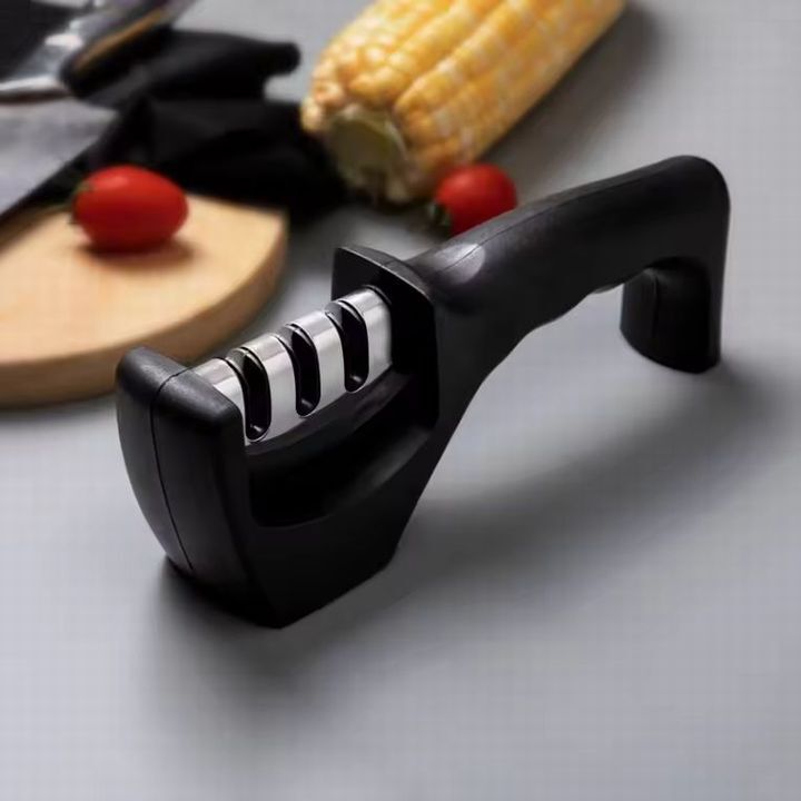 ● ナイフやハサミをすばやく効率的に研ぐのに役立つ3つの砥石があります。