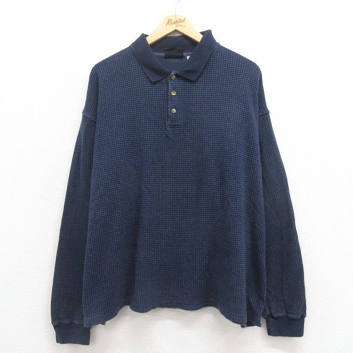【商品名】 XL★古着 FADED GLORY 長袖 ポロ シャツ メンズ 00年代 00s 大きいサイズ コットン 紺他 チェック