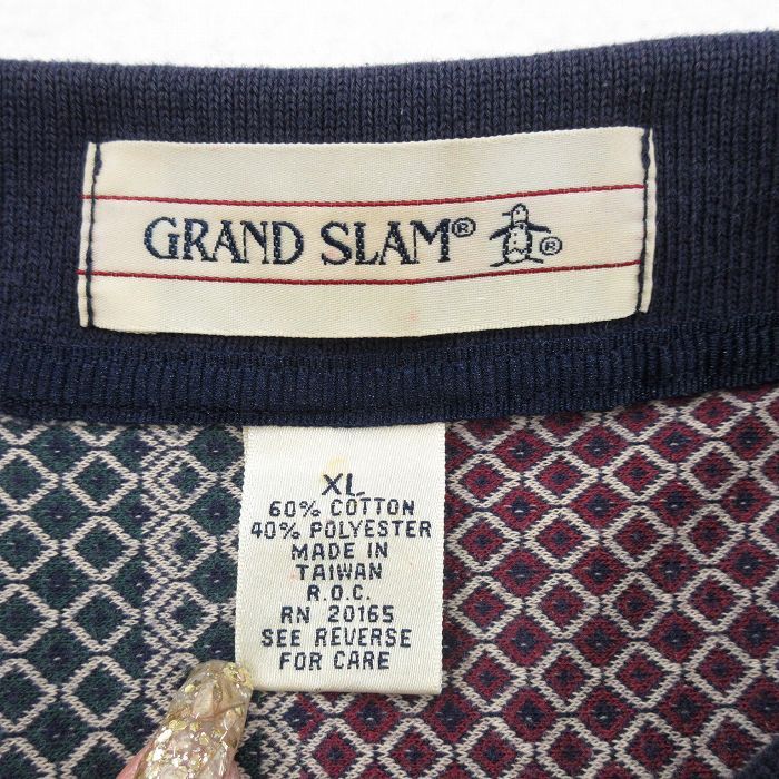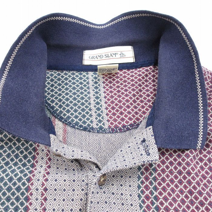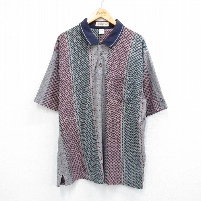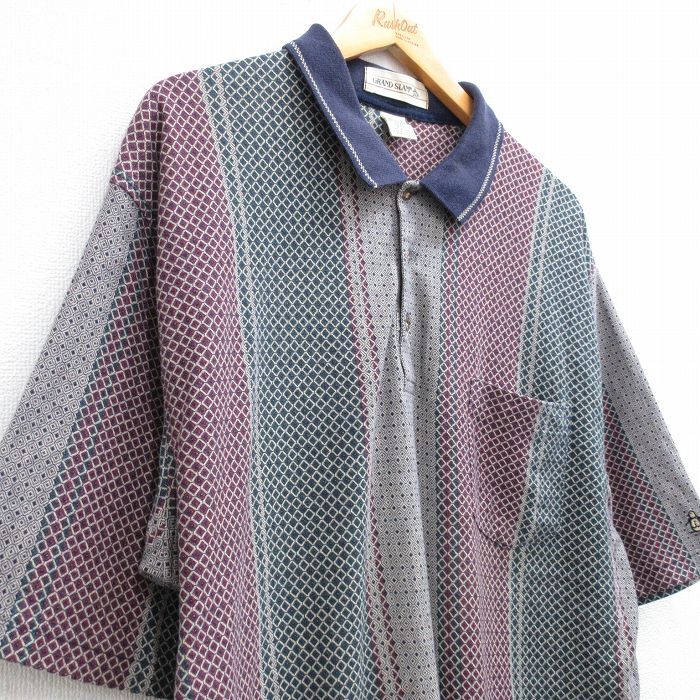 【商品名】 XL★古着 グランドスラム 半袖 ポロ シャツ メンズ 00年代 00s 総柄 大きいサイズ 薄ベージュ系他 ストライプ