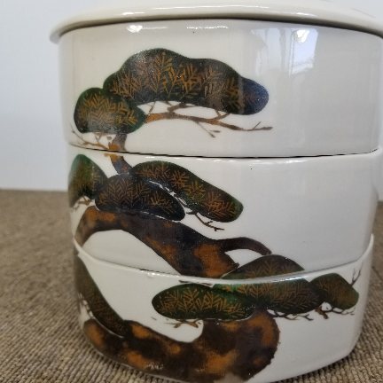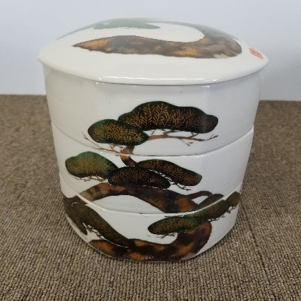 食器 重箱 陶器 八角重ね鉢 十代目市川海老蔵絵付け 寿松 7769 06