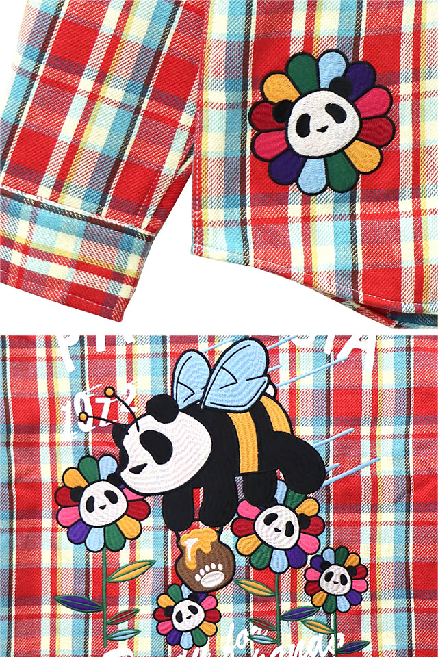 和柄ブランド【錦】の姉妹ブランドとして誕生した、お茶目なパンダをモチーフとした【PANDIESTA JAPAN】より「ハニーパンダヘビーネルシャツ(564856)」のご紹介です。 今や、錦の定番モチーフとなった「錦PANDA」!! 今回は、極厚のフランネルチェック生地をベースに使ったロングスリーブシャツが登場しました。 フランネルチェックシャツは、毎年様々なパターンのチェック柄をリリースし、定評のある秋冬人気のアイテムになります。 着心地の良さも申し分なく柔らかな肌触りと同時に保温性を高めたヘビーフランネルチェックシャツ。 前立てのボタンには、熊猫謹製アイテムではお馴染みのオリジナルウッドボタンを使用し、温かみのある雰囲気を演出しました。 | |||||||||||||||||||||||||