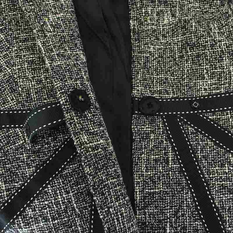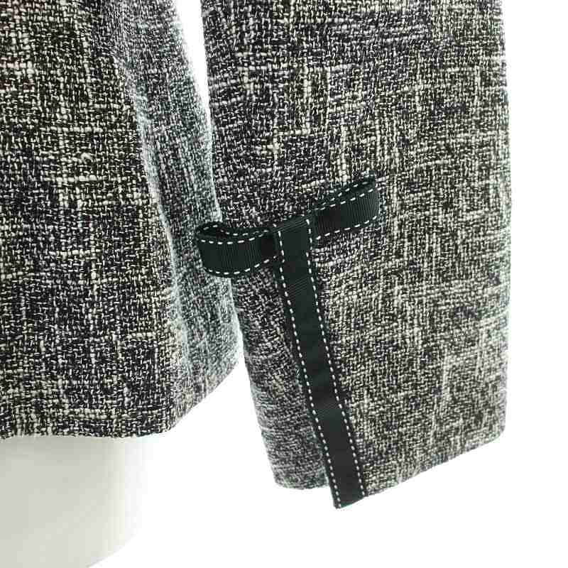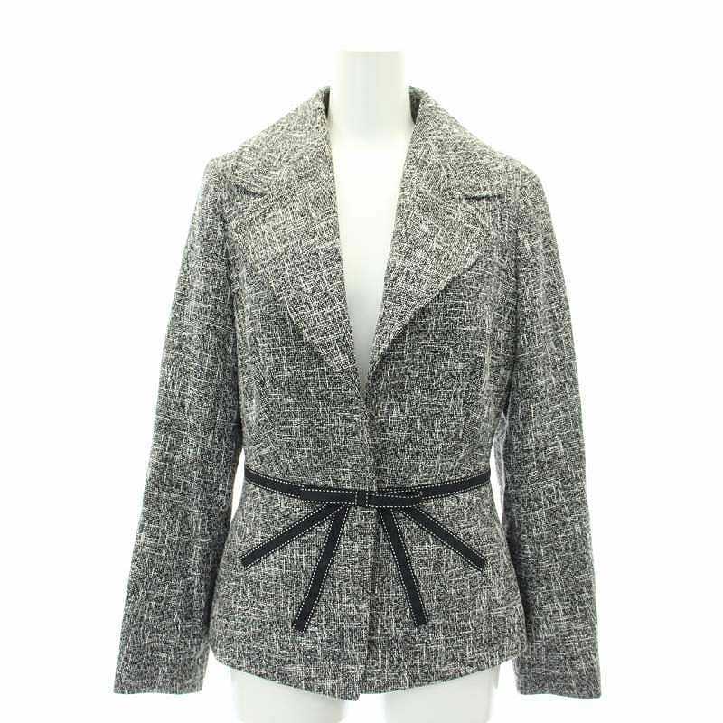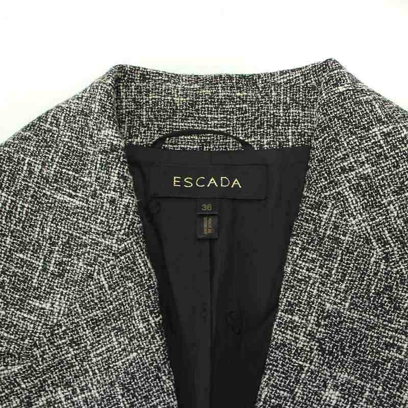 エスカーダ ESCADA ウエストリボンツイードジャケット テーラードジャケット 36 黒 白 ブラック ホワイト /DF ■OS レディース