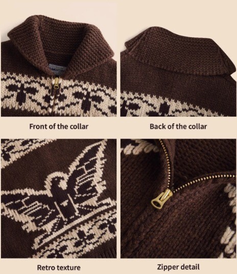 このスタイリッシュなMt.Robson 厚手ステッチウールカーディガン、イーグルヘビーセータージャケットは、厚手の素材でしっかりとした暖かさを提供します。アメリカンレトロなデザインが魅力的で、カジュアルなスタイルにもマッチし、季節を問わず日常のコーディネートに活躍してくれるアイテムです。