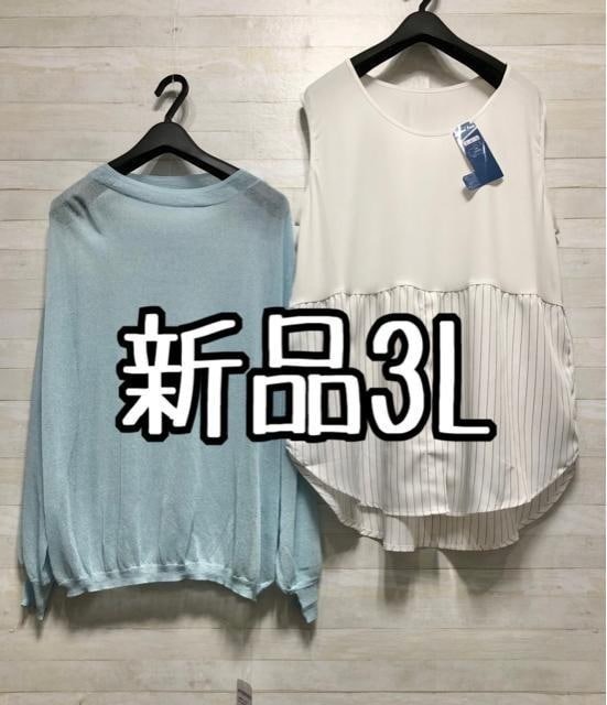 新品☆3L♪重ね着風きれいめタンクトップ&すけ感シアートップス☆f118