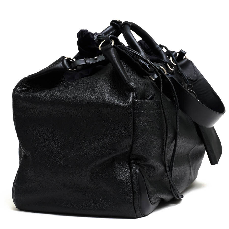 ガレリアントのゴート革を使用したボストンバッグ。メイン収納部は巾着タイプ、ショルダー付け根部分をいせ込み、床革を重ね込んだ角当てなどこだわりが随所に光っております。カラーリングもシンプルながらシックなので、大人のカジュアルにもピッタリ。本体の柔軟なゴード革の経年変化もお楽しみいただけます。 |