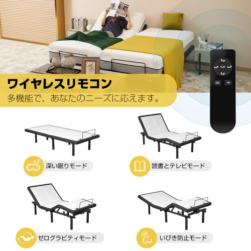 • 2.【ワイヤレスリモコン】調節可能なベッドは、テレビ視聴モード、いびき対策モード、ゼログラビティモード、リラックスモードなど、さまざまな機能に対応します。ゼログラビティと阻害のない呼吸を実現し、リモコンには記憶機能があり、お気に入りの設定を保存して、パーソナライズされた体験を提供します。