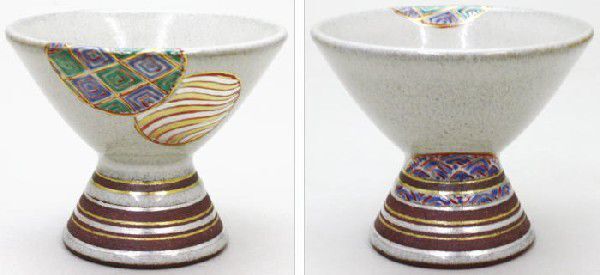 ぐい呑み 京焼き 灰釉丸紋 中村秋峰作 仕服:弥三右衛門間道