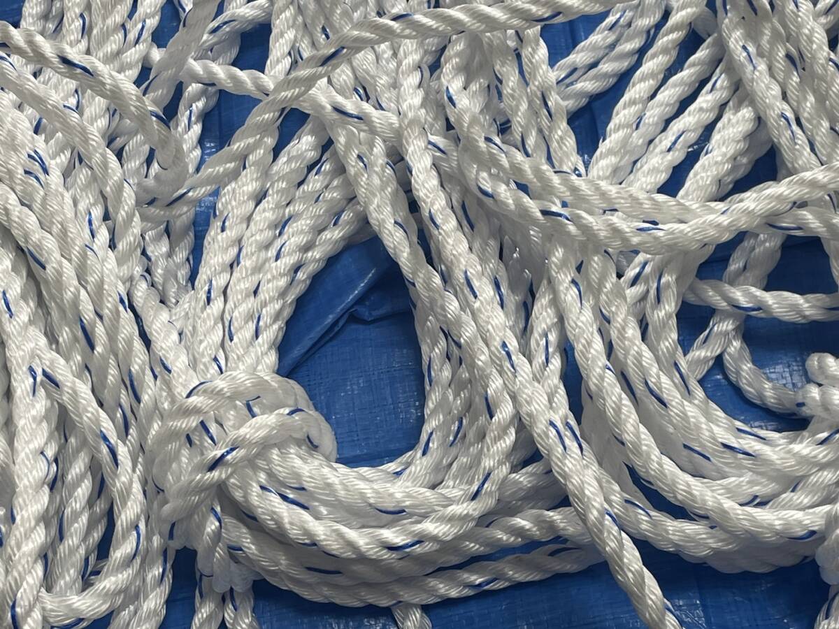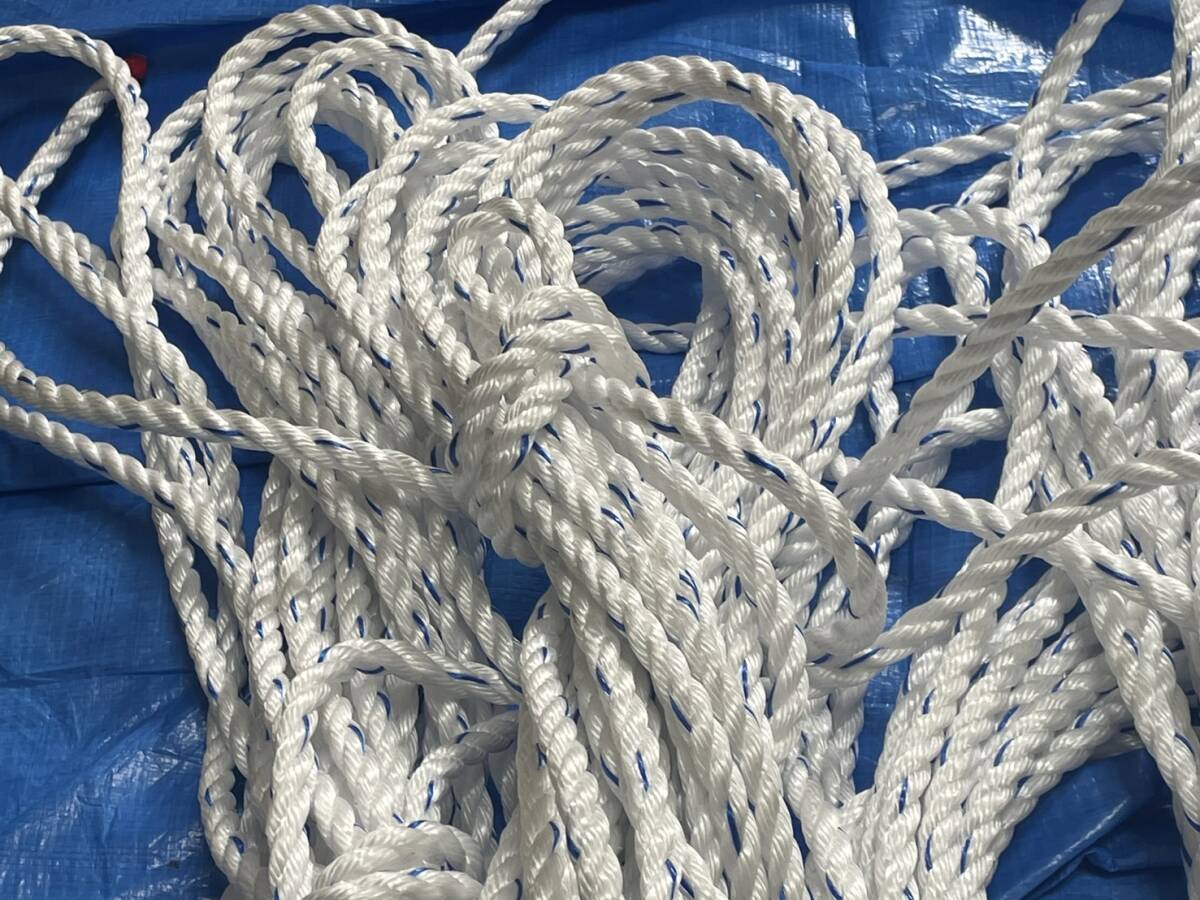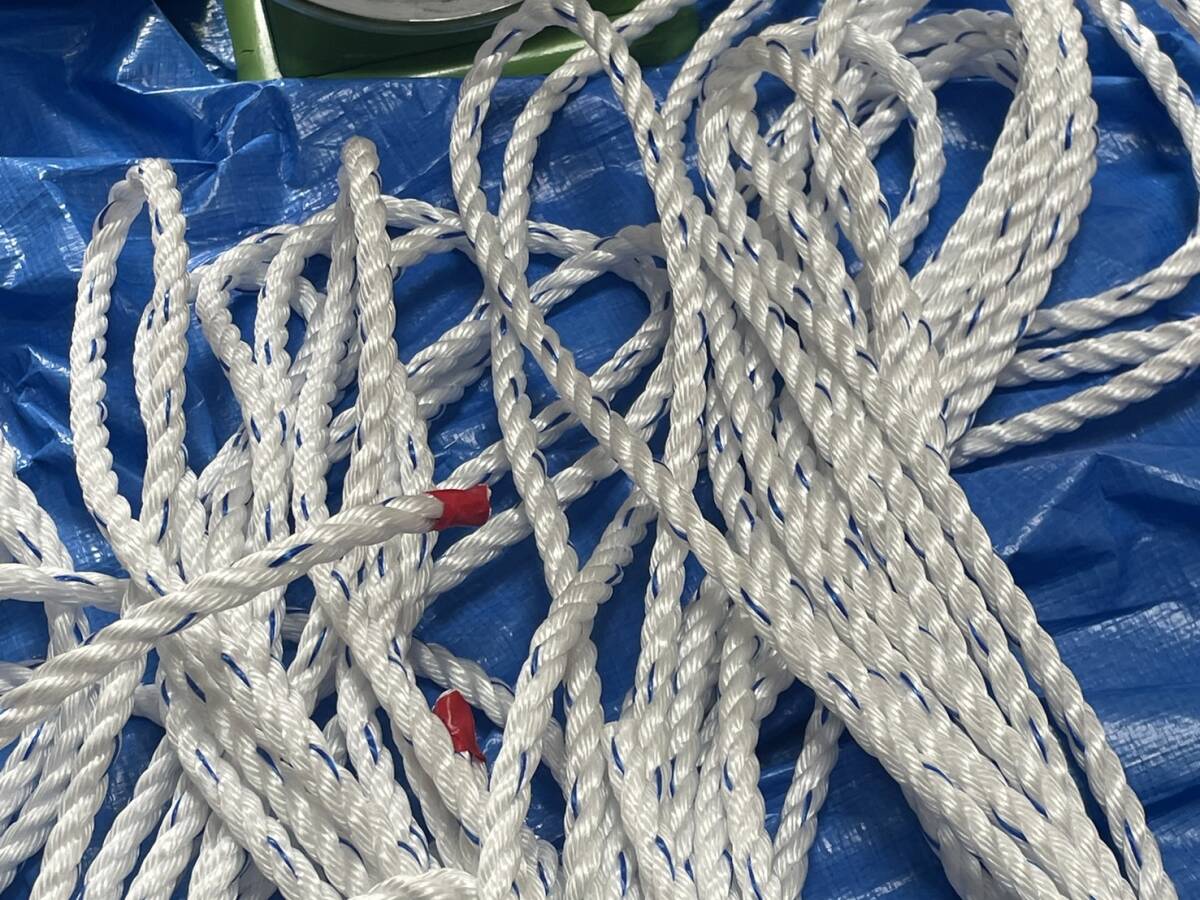 大特価!新品・国産☆5巻セット//白色・青入り/PP 三つ打ちロープ★