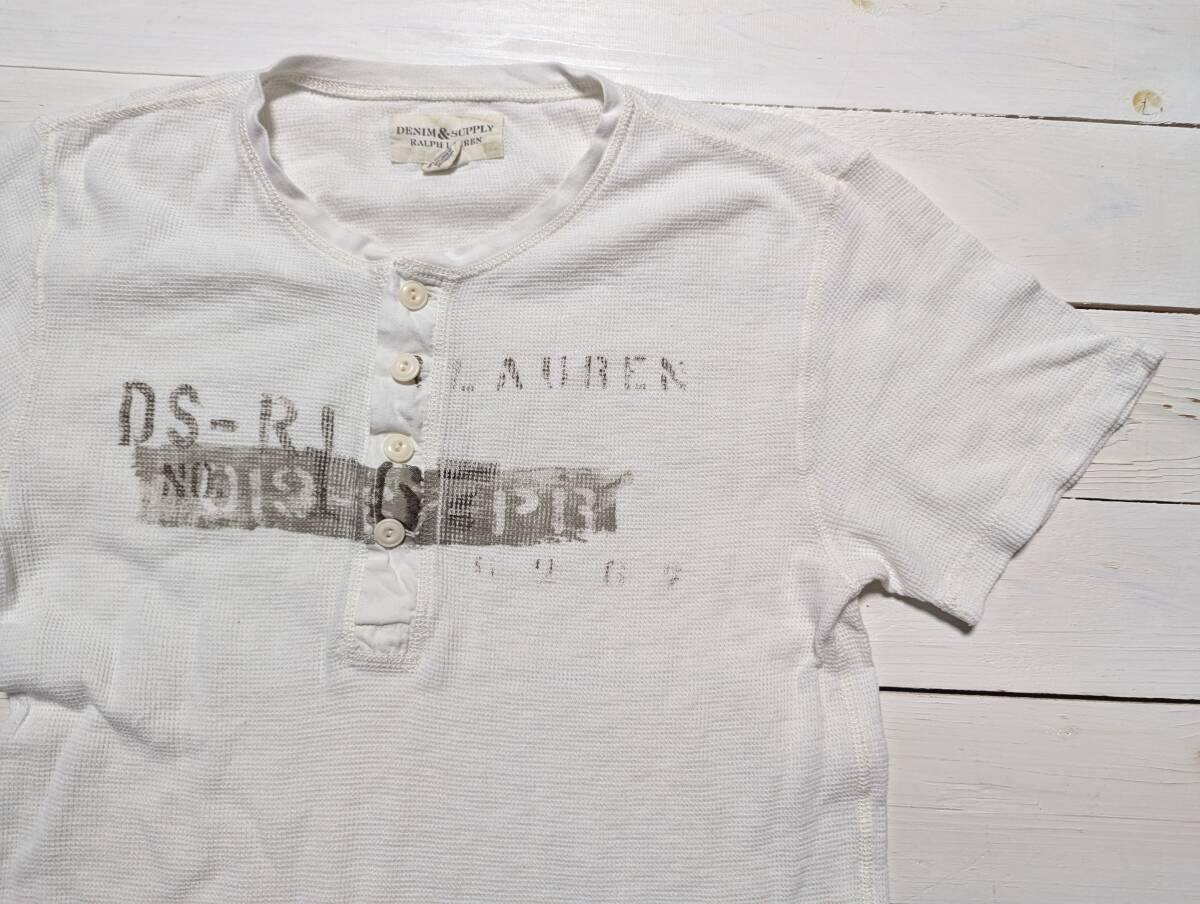 送料無料 デニム&サプライ 半袖 ヘンリーネック プリント Tシャツ 白 ホワイト サーマル Denim & Supply Ralph Lauren ラルフローレン
