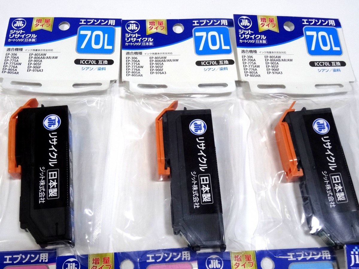 EPSON エプソン 互換インク シアン 3本 ライトシアン 2本 ライトマゼンタ 2本 計7本 ジットリサイクルカートリッジ JITです。