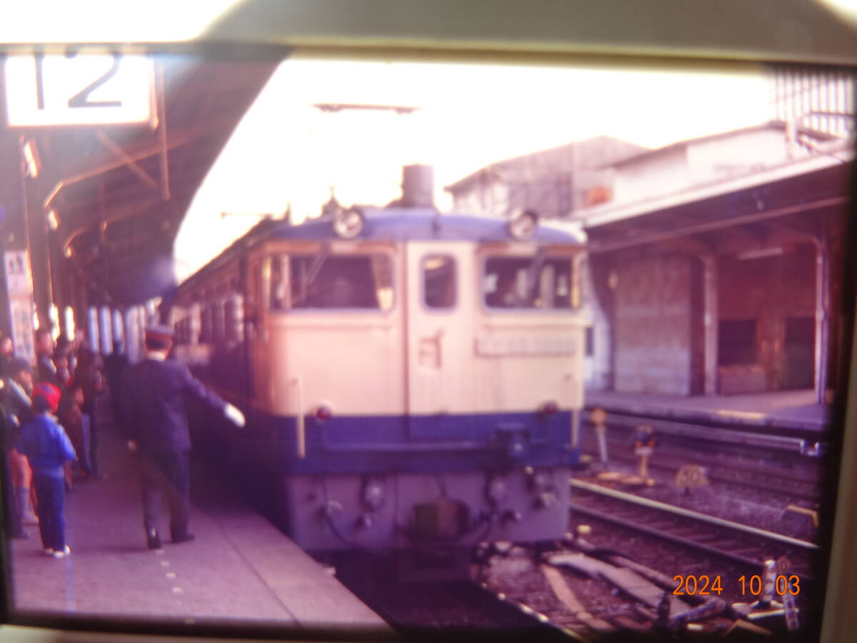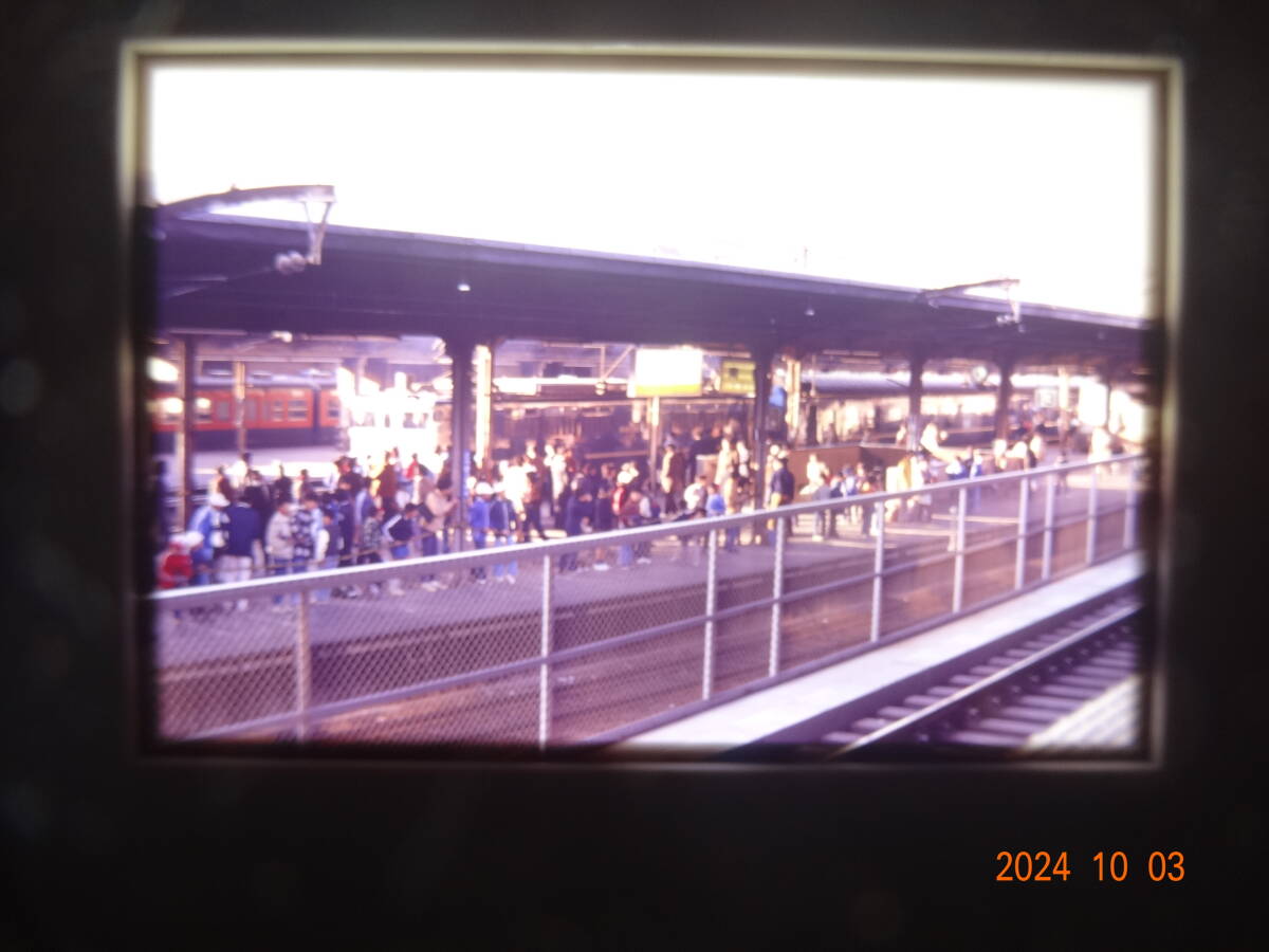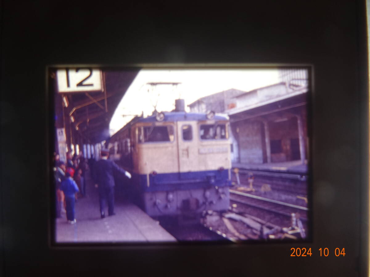鉄道写真、昭和50年代 35ミリスライドフイルムJR東海道線 東京駅 フイルム汚れあり。
