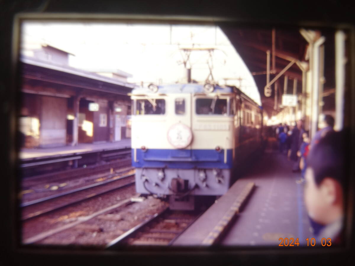 鉄道写真、昭和50年代 35ミリスライドフイルムJR東海道線 寝台特急東京駅 フイルム汚れあり。