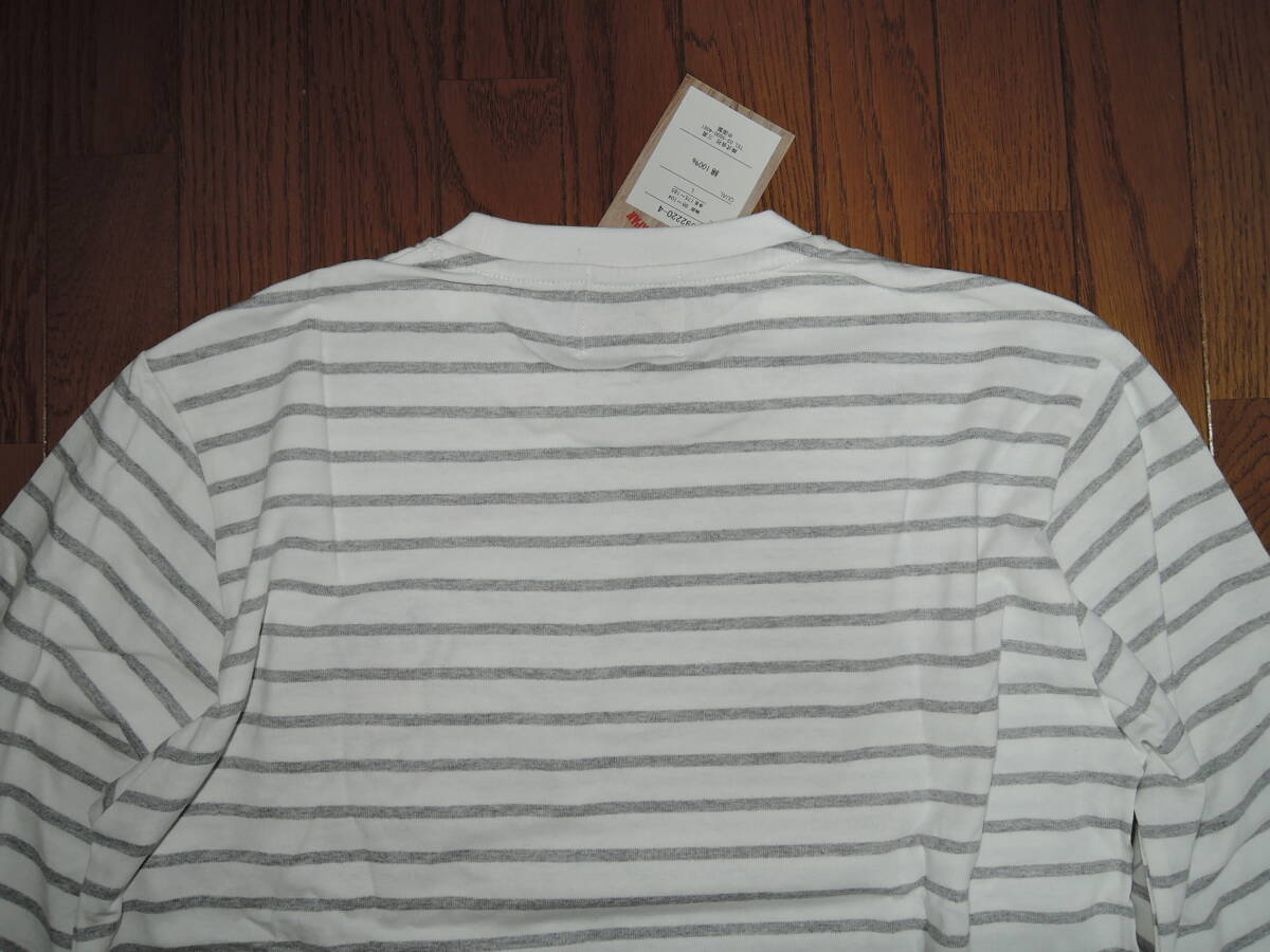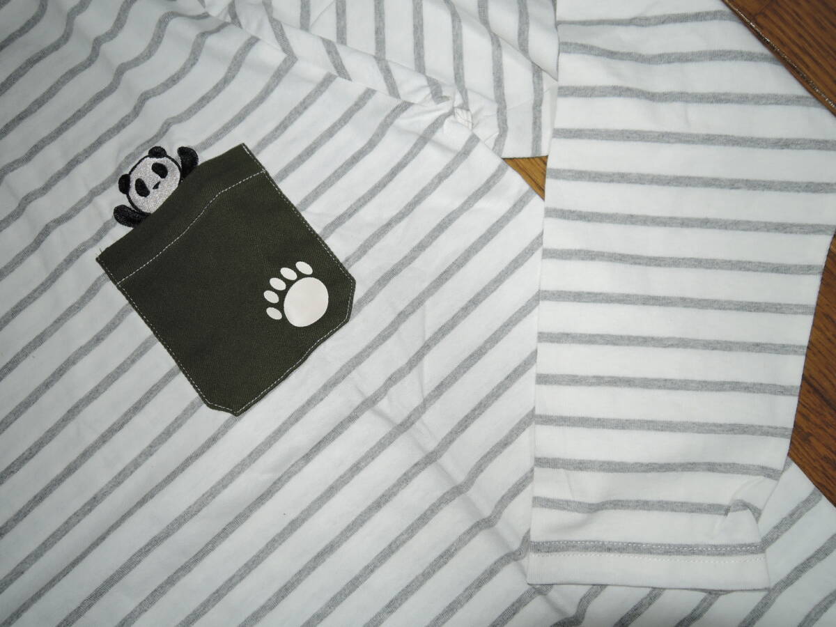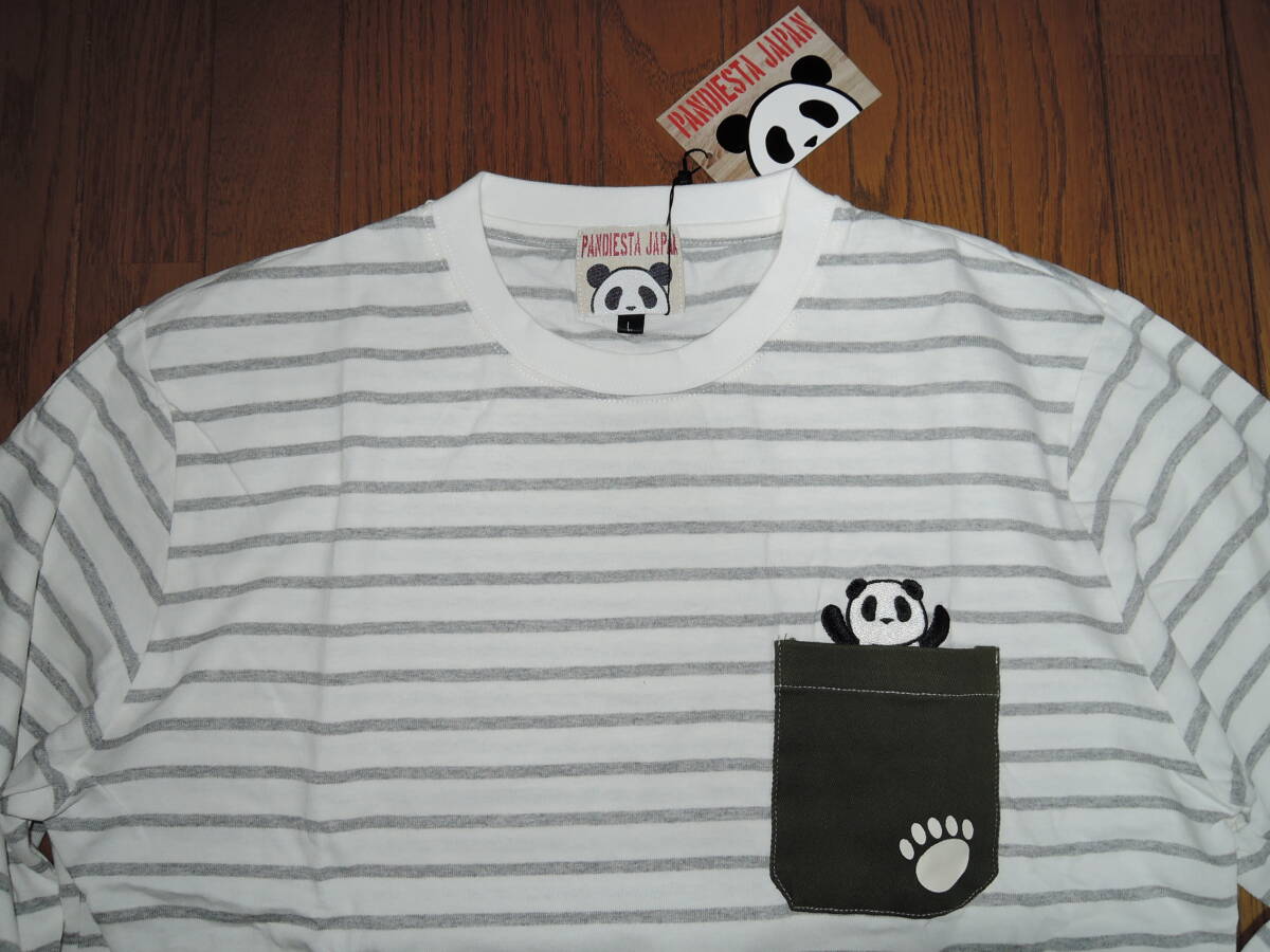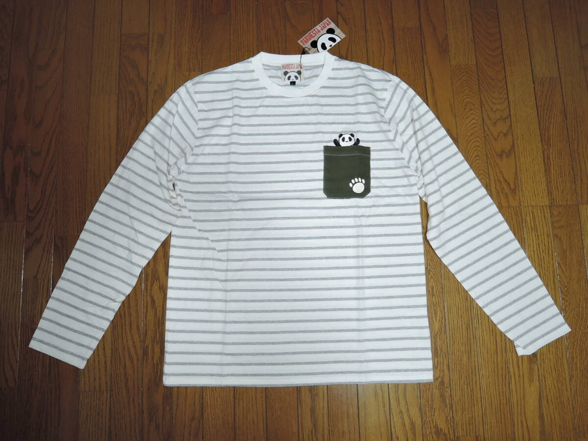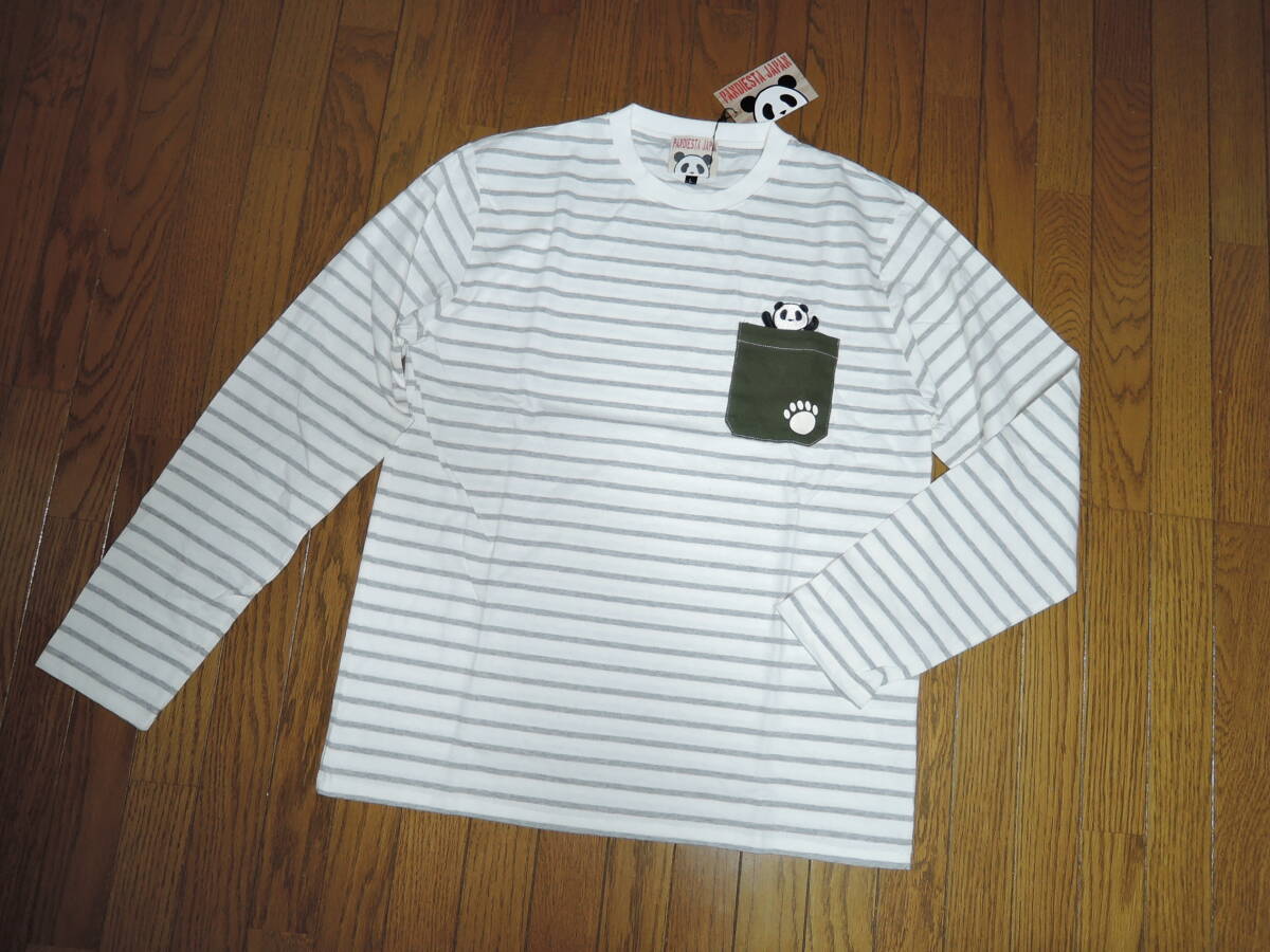 新品 PANDIESTA パンディエスタ ポケット付きロングスリーブTシャツ L 白灰 パンダ ワッペン ロンTシャツ カットソー