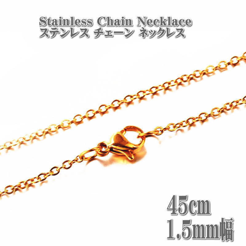 ステンレスネックレス ゴールド 約45cm 1.5mm幅 ネックレス ステンレス チェーン アズキチェーン アズキ 小豆 | |