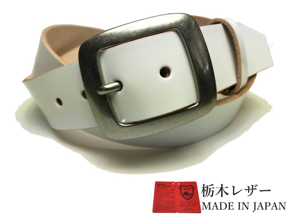 新品 栃木レザーベルト 本革 牛革 メンズ レディース 白 国産 ム地 40mm カジュアル W007WH