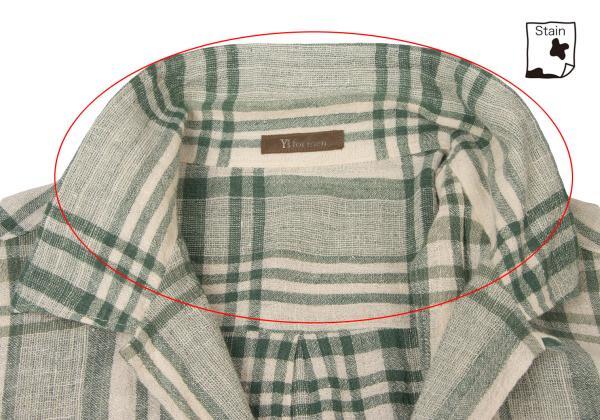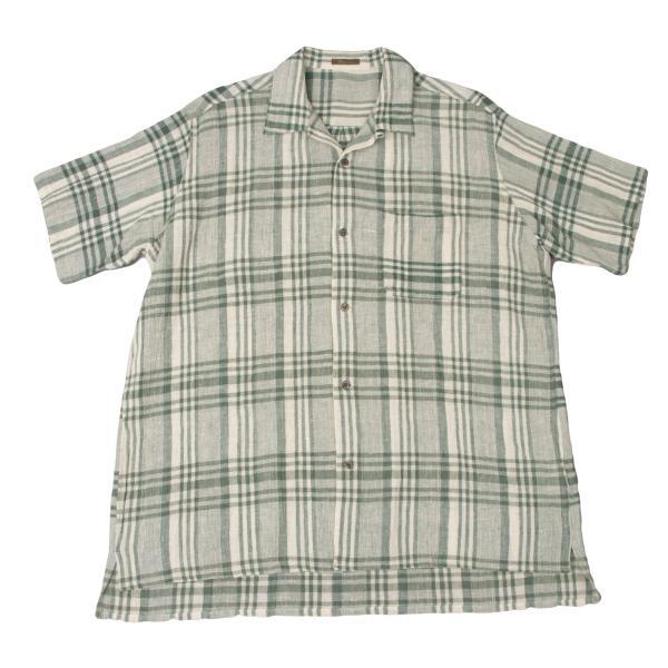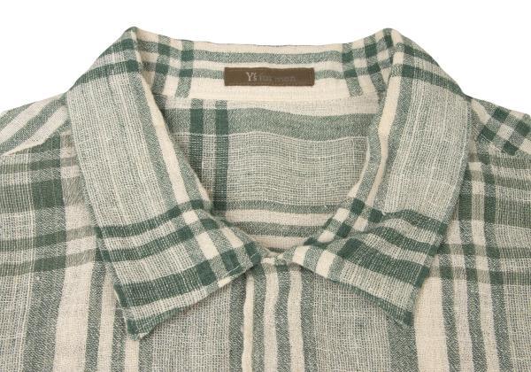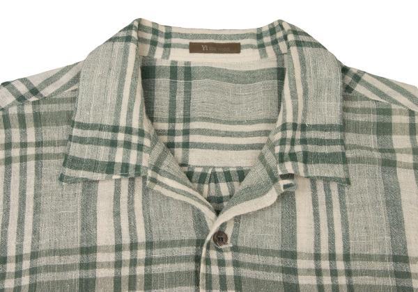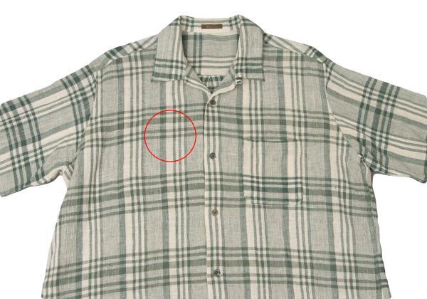 | ワイズフォーメンY's for men ワイズフォーメンY's for men コットンチェック織りオープンカラー半袖シャツ 緑オフベージュM位 |