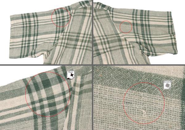 | コンディション | 透け感があります。前身頃・右袖・襟裏にシミ、左袖・後ろに引っ掛けがあります(写真参照)。 その他目立った汚れ、ほつれ等なくいい状態です。クリーニング済み。 |