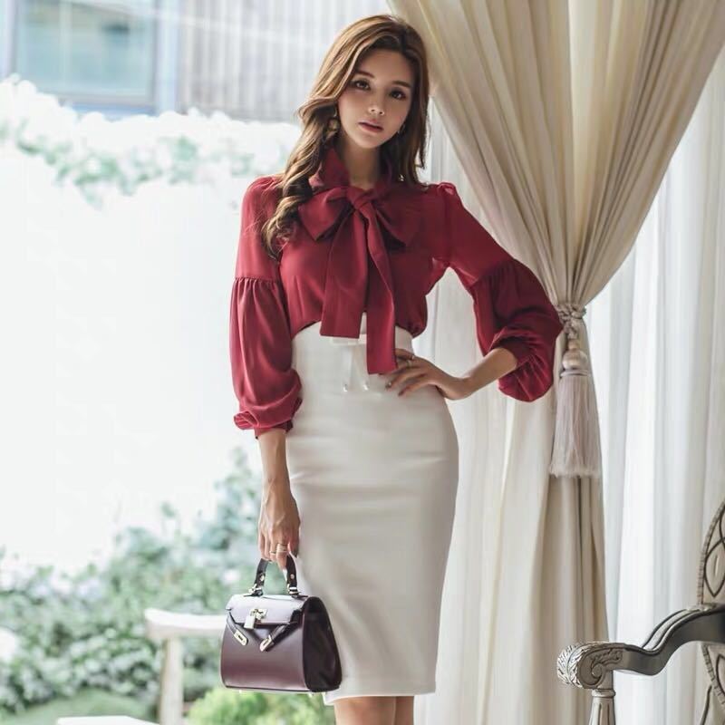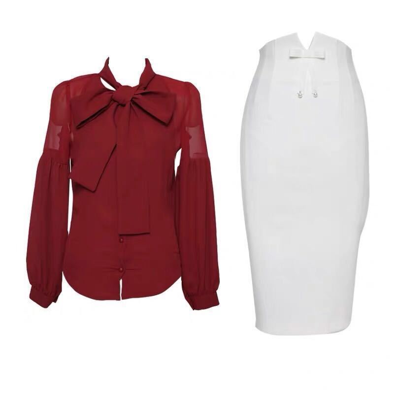 CHQ1431#タイトワンピース トップス スカート 2点セット フォーマル 長袖 膝丈