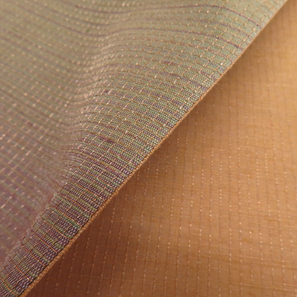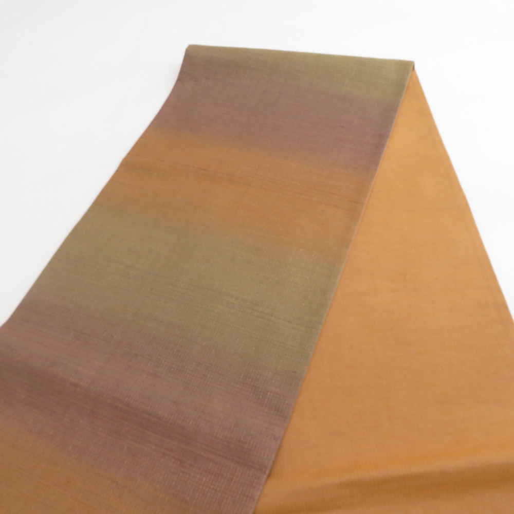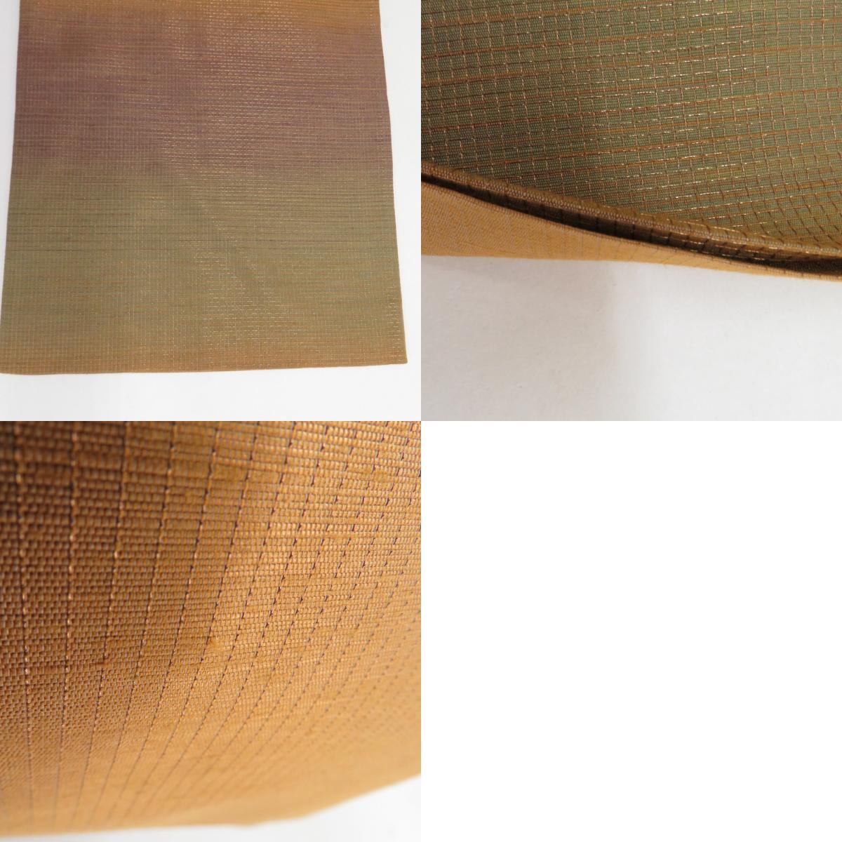 | 袋帯 洒落袋帯 金色x茶色x紫色 ぼかし 金糸 正絹 仕立て上がり 着物帯 長さ448cm |