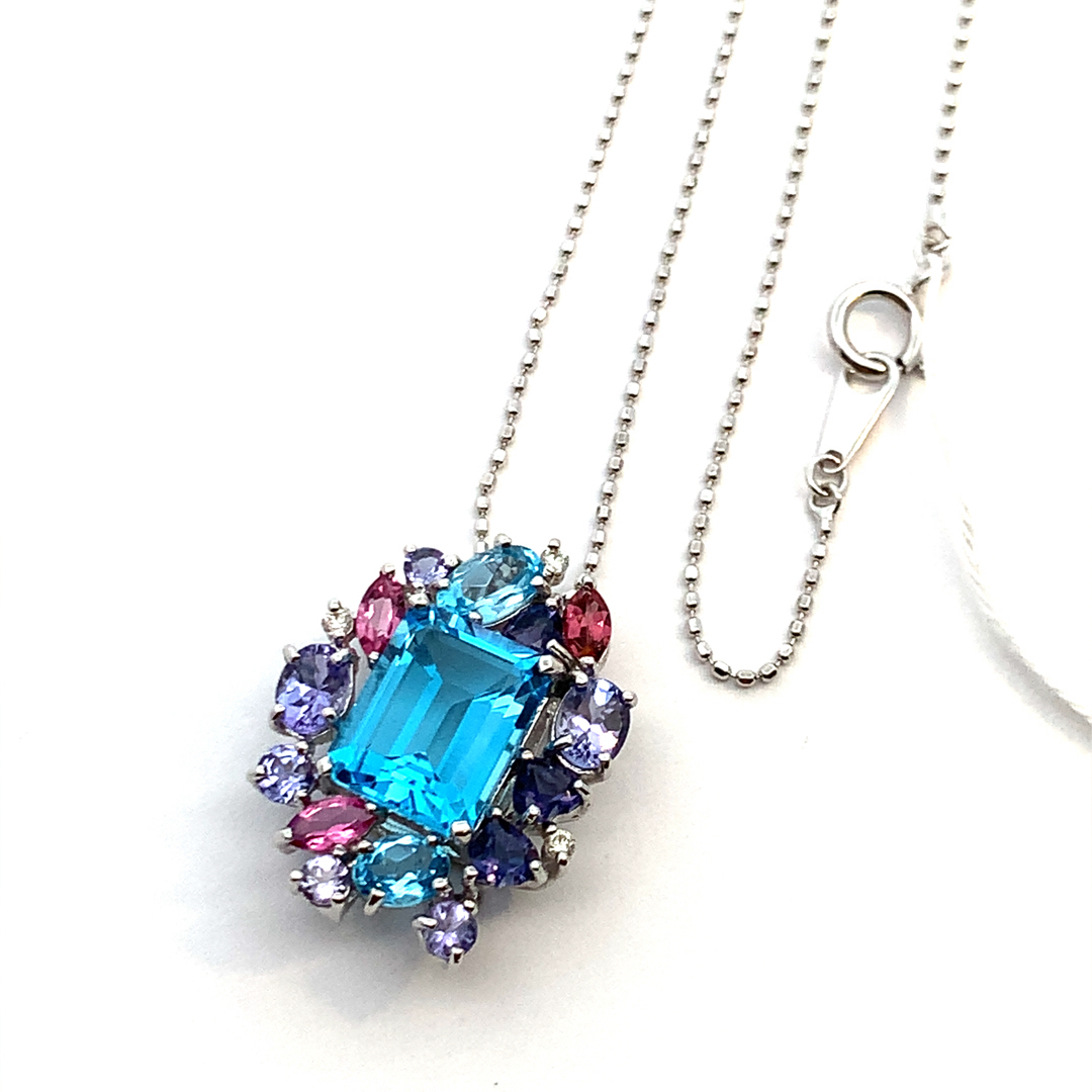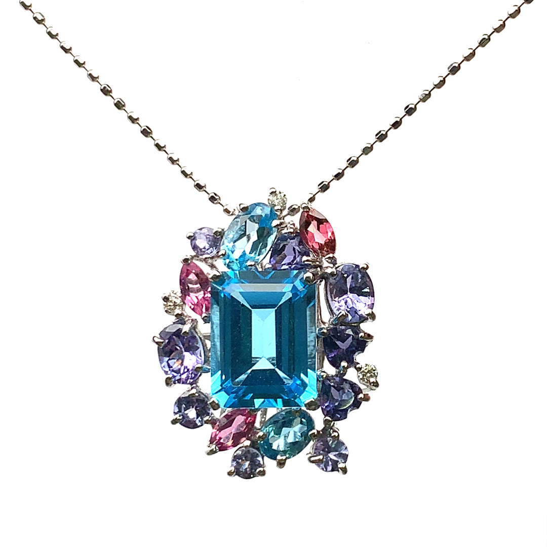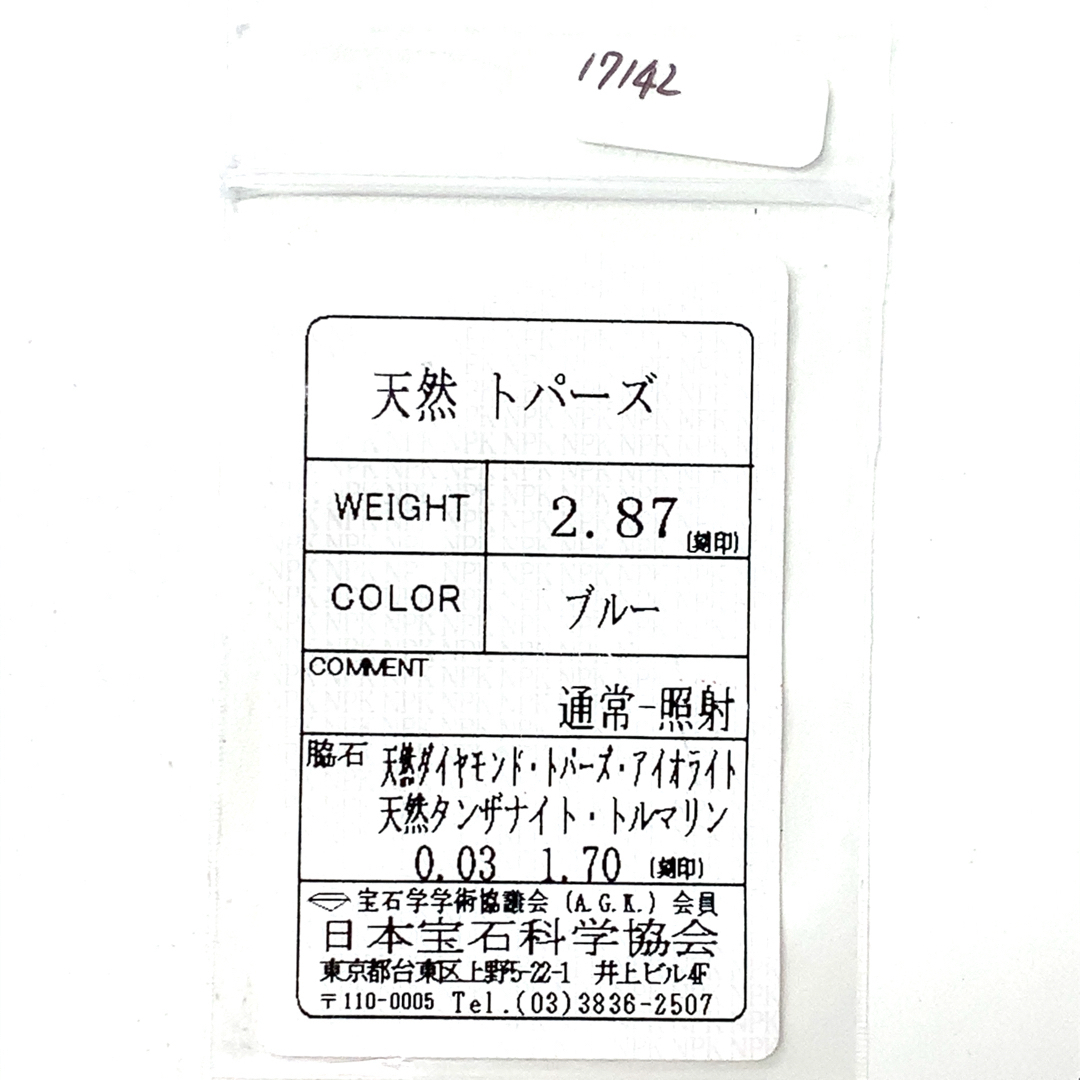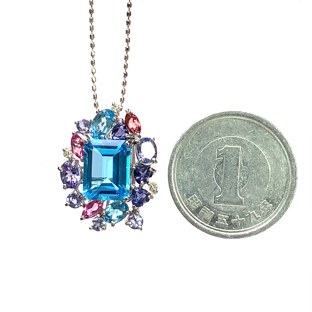 | 素材 | ■K18WG ■宝石:ブルートパーズ2.87・マルチストーン1.70・ダイヤモンド0.03 |