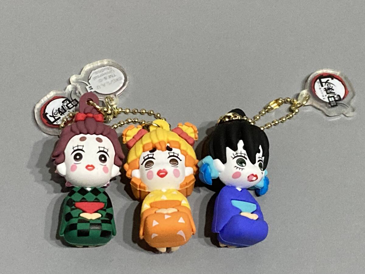 【未使用】USJ 鬼滅の刃 コレクタブルキーチェーン 竈門炭治郎 炭子 嘴平伊之助 猪子 善逸 善子 3点セット