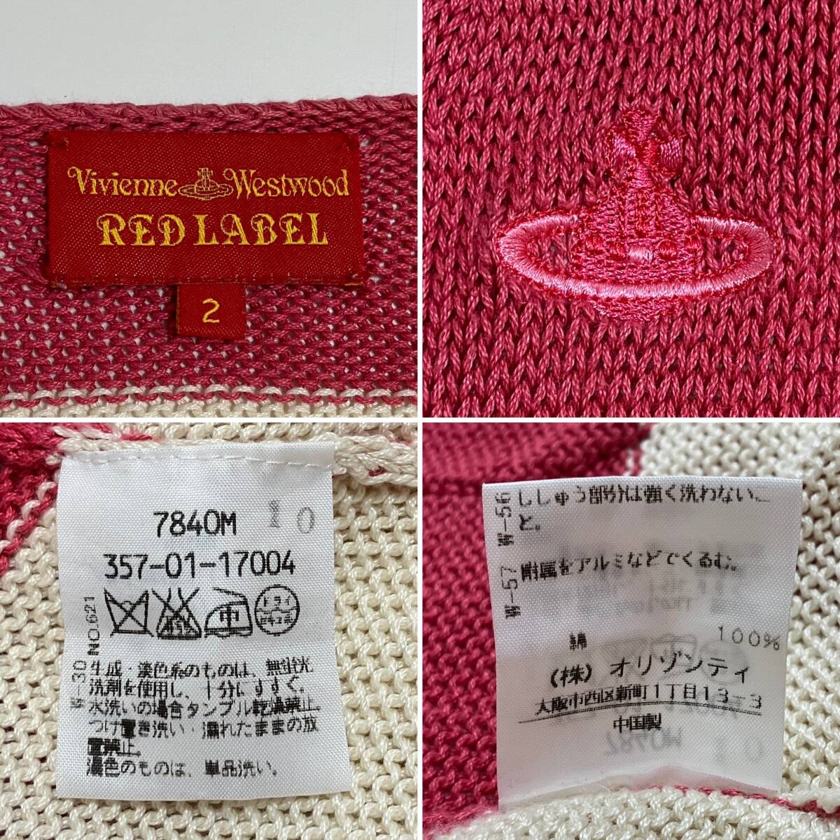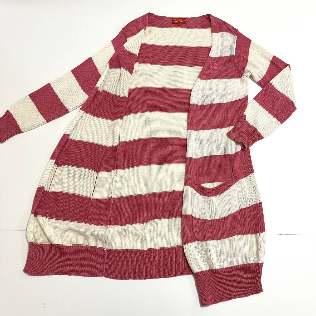 初期 オリゾンティ vivienne westwood RED LABEL オーブ 刺繍 ニット カーディガン ガウン ボーダー ホワイト × ピンク