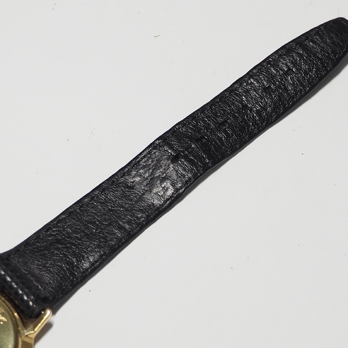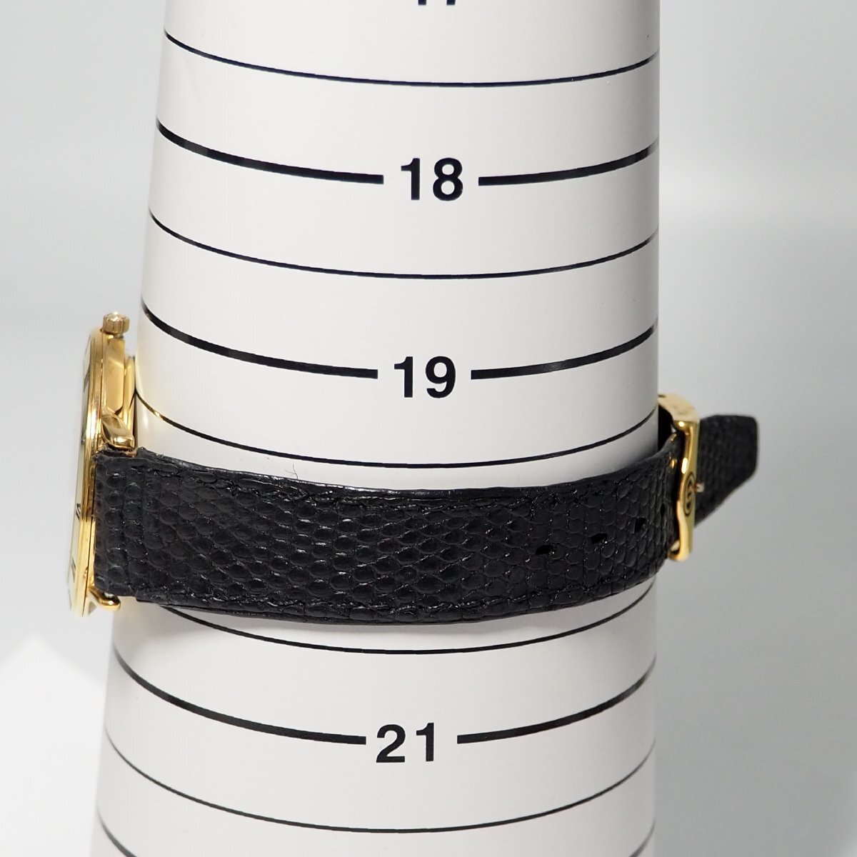 グッチのローマンメンズ腕時計です。 メンズ・レディースどちらでもご使用いただけるデザイン・大きさかと思います。 稼働品で除菌クリーニング致しておりますのですぐにご使用いただける状態です。 ☆管理番号:F181 ☆稼働品 ☆クリーニング (磨き作業+エタノール除菌クリーニング) ☆防水:- ☆ムーブメント:クォーツ ☆素材:ステンレス+革ベルト(純正品) ☆電池交換:稼働品のため電池交換致しておりません。 【サイズ】 ◇ケース幅約32mm×32mm(リューズ含まず) ◇厚さ約6mm ◇腕回り最大約200mm 【カラー】 ◇文字盤:ブラック ◇ベゼル:ゴールド ◇ケース:ゴールド ◇ベルト:ブラック 【状態】 ◇A ☆ケース:ほぼキズなし ☆ベゼル:ほぼキズなし ☆ガラス:キズなし ☆裏蓋:若干薄キズ ☆ベルト:GUCCIロゴがかなり薄くなっております。若干使用感あり。(除菌クリーニング済) ☆その他特記事項:- 【付属品】 ◇本体のみ |