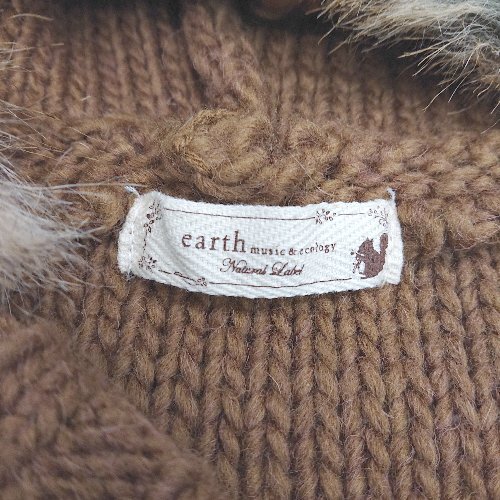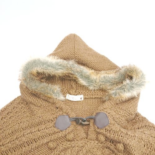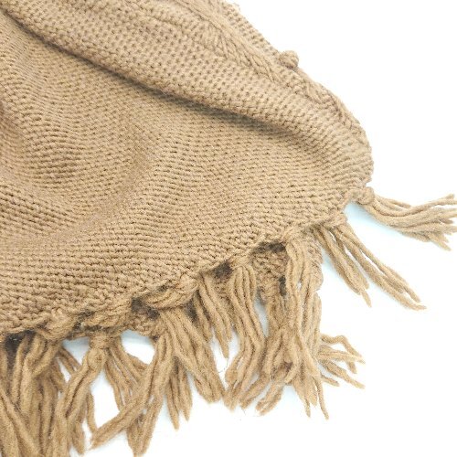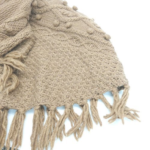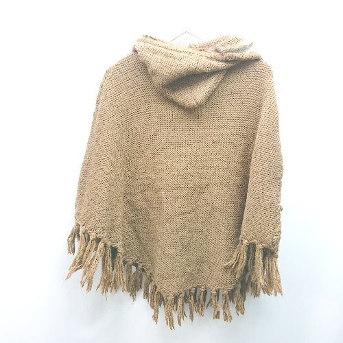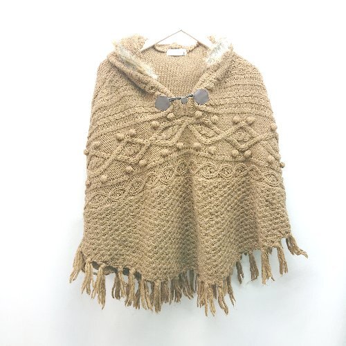 ◇ ◎ earth music&ecology カジュアル 秋冬コーデ ニット フリンジ 長袖 ポンチョ 表記なし キャメル レディース E