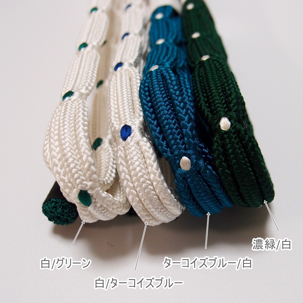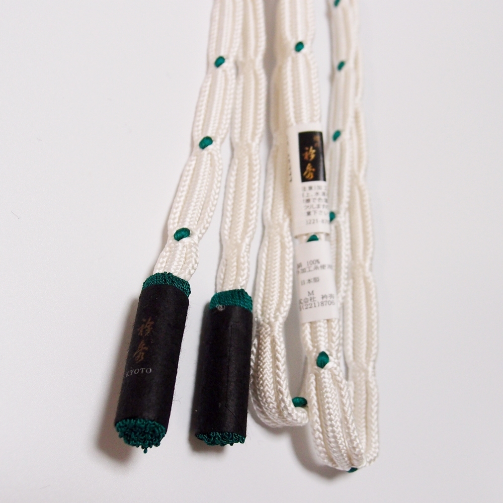 長さ 約157cm 撚り房 約4cm 絹 100% 日本製 希望小売価格 11000 三本の組が、ポイントでまとめられてはまた離れを繰り返しています ポイントにいれられたドットがアクセント 爽やかにあわせやすい色味に仕上がっています 真冬以外のスリーシーズンにいかがでしょうか 隙間があると見立てる事もできるので、夏にも使いやすく、また、夏専用(全体に透かしになってるとか)というデザインでもないので、年中使いやすいです 単衣や夏着物、帯付きの時などに小物を涼やかに装うのがオススメです 色の比較用に四色並べた画像を載せておきます 一本ずつ別々に出品しています 七緒掲載品 | ||||||||||||||||