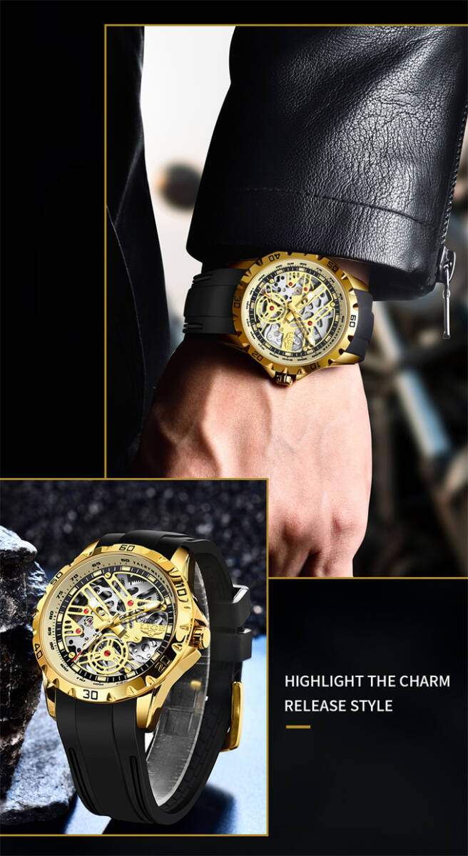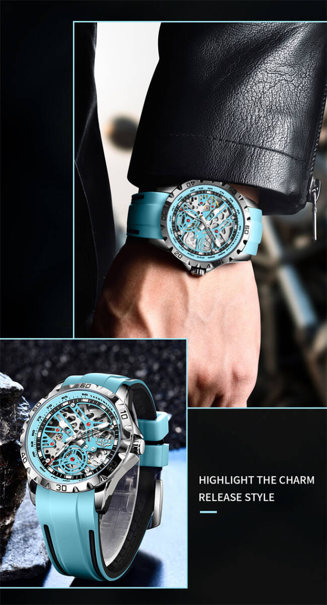 Lige-男性用防水トゥールビヨンメカニカル自動腕時計、シリコンスケルトン付きラグジュアリーホローウォッチ、トップブランド、新品、2024