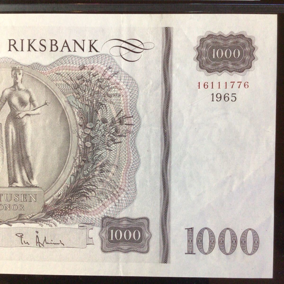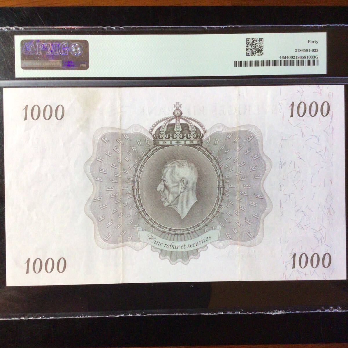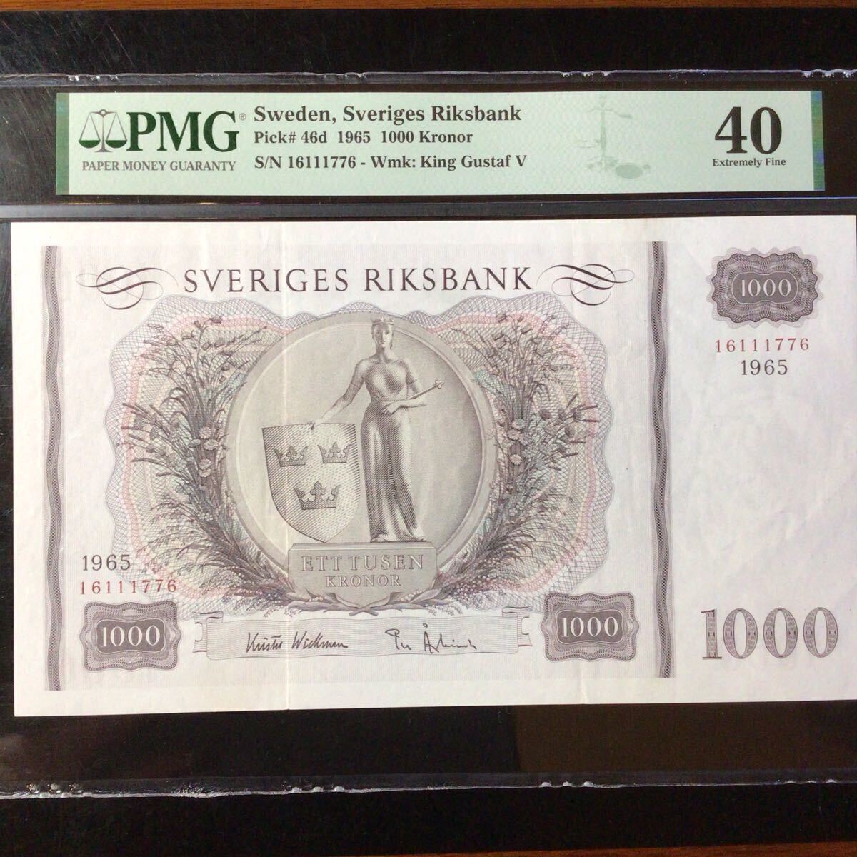 スウェーデン《スウェーデンリクス銀行》1000クローナ【1965】『PMGグレーディング鑑定 極美品 40』*状態表示については、個人によって多少の違いがありますが画像にて判断し納得して頂ける方のみ入札して下さい。