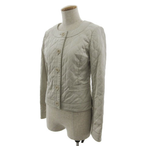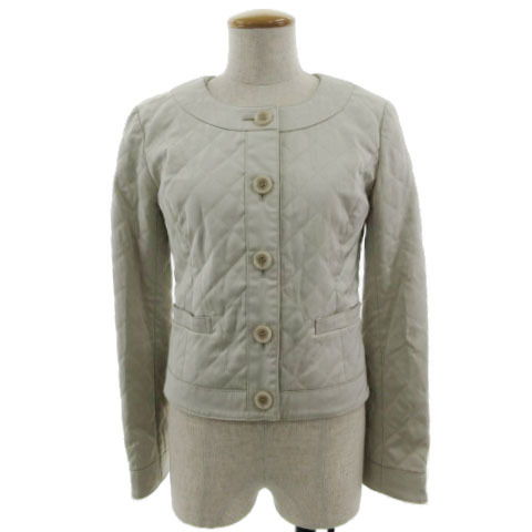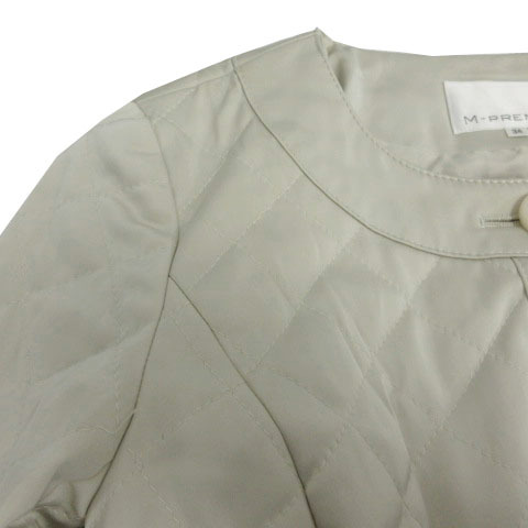 エムプルミエ M-Premier ジャケット ノーカラー キルティング 中綿入り 日本製 グレージュ 34 レディース