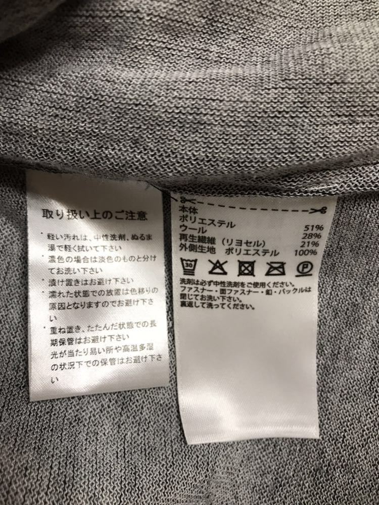 *サイズM 長袖 灰白 型番:BQ9353 ポリエステル51% ウール28% リヨセル21%