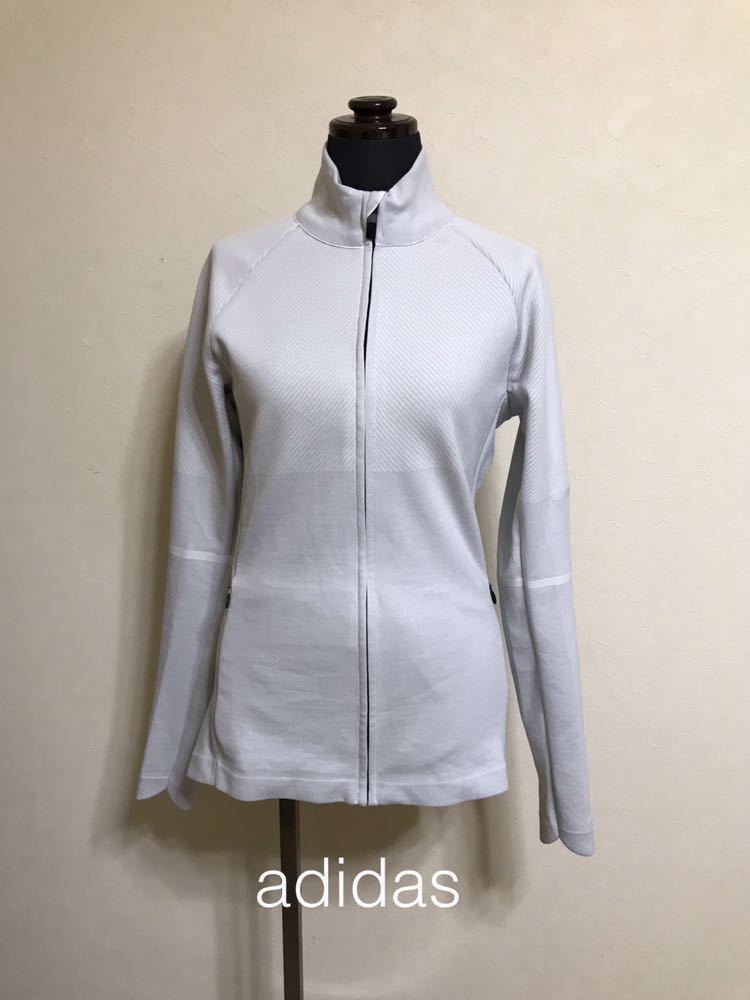 【美品】 adidas アディダス クライマヒート ジャージ トラックトップ ジャケット 保温 撥水 防風 レディース サイズM 長袖 灰白 BQ9353