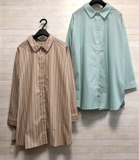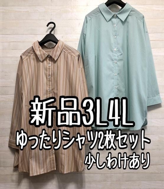 新品☆3L4L♪ストライプ柄♪ゆったりデザインシャツ2枚セット☆f450