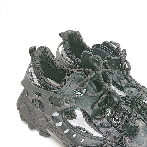 ◇ FASHION カジュアル レースアップ ゴツゴツ レジャー スニーカー サイズ43 ブラック メンズ E
